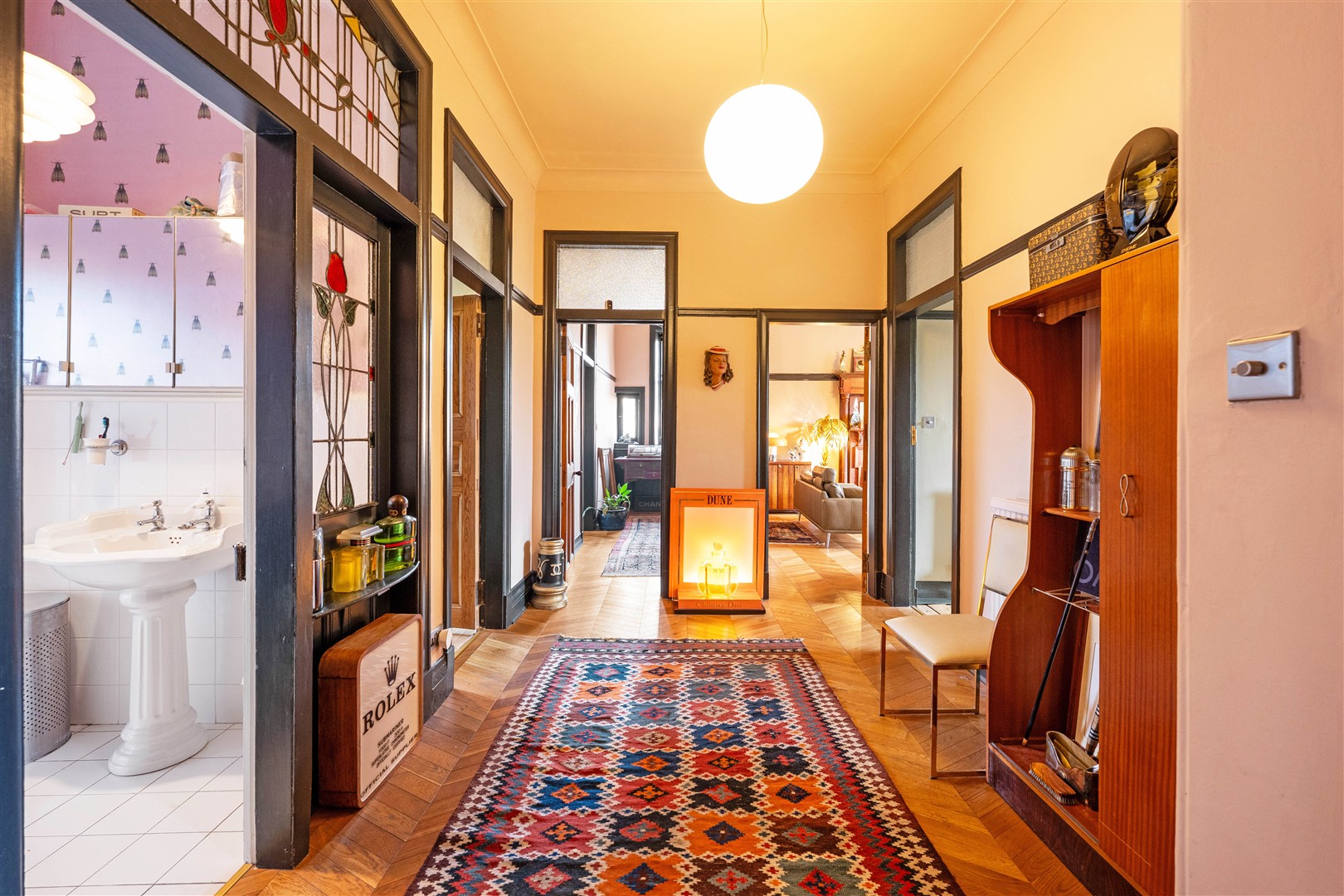 Internally, the property has been meticulously maintained by the current proprietors with the accommodation comprising; entrance vestibule with double storm doors and striking stain glass features, welcoming reception hallway with storage off and refurbished herringbone hardwood flooring running through to the main bay windowed lounge, that is flooded with natural light due to its open setting, and also boasts a well-preserved original feature fireplace and striking cornicing. A superb dining kitchen is found to the rear of the building, accompanied by a range of base and wall mounted units, ample space for dining and a spacious utility off. Three well-proportioned double bedrooms complete the remainder of the living accommodation, all boasting stunning feature fireplaces, whilst the bay windowed principal is enhanced with grand proportions and ornate cornice work. Access through the most striking stain glass doorway leads to the spacious galley style family bathroom, boasting a three-piece suite with shower over bath, completing the internal accommodation on offer.