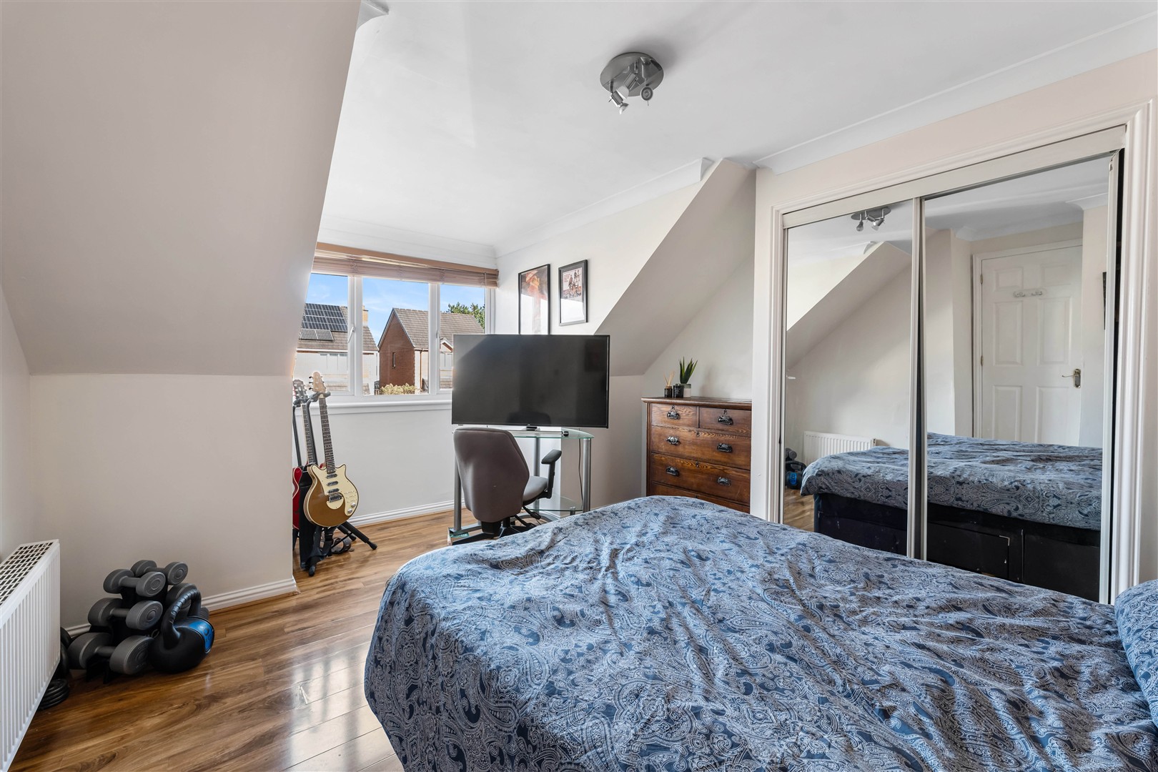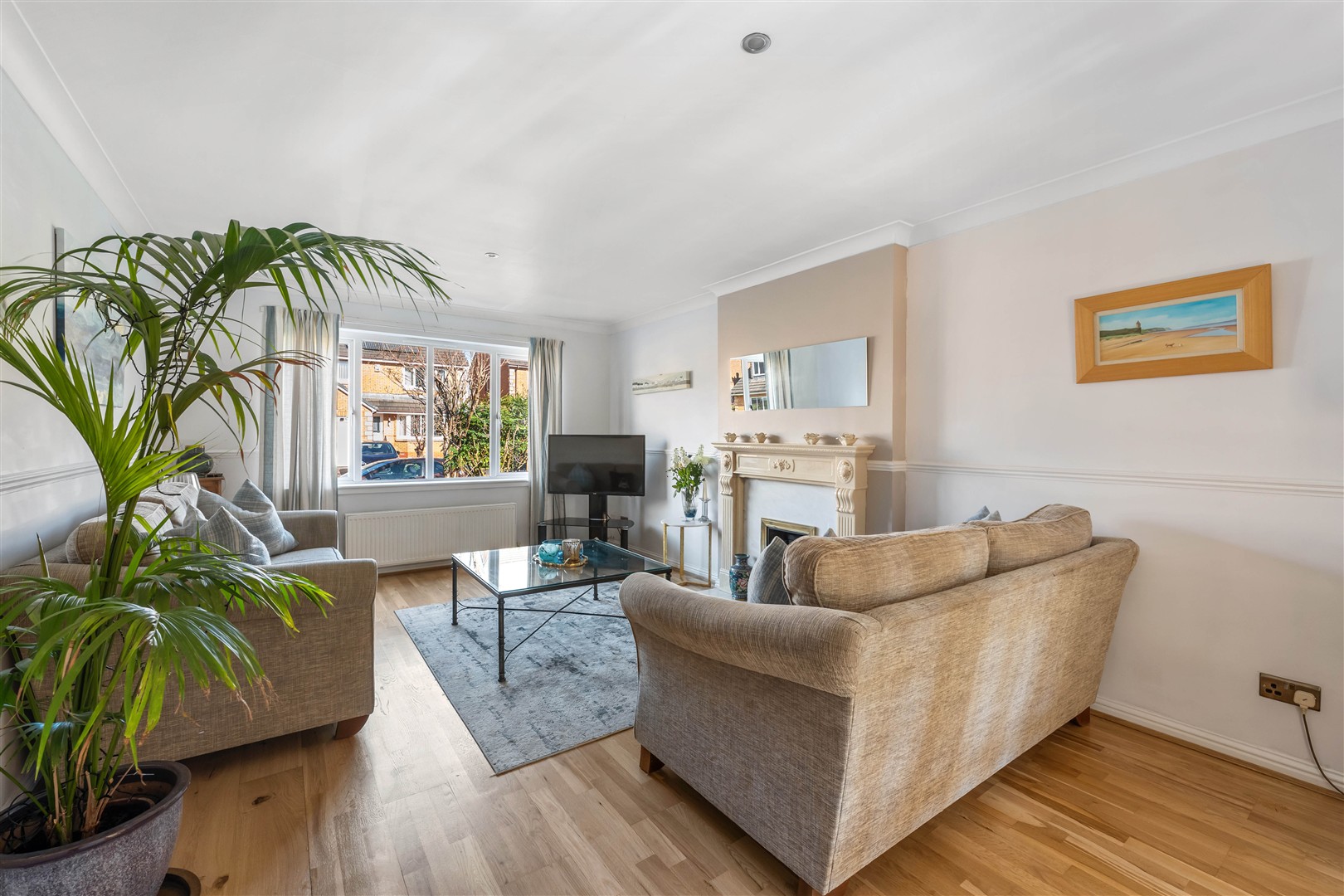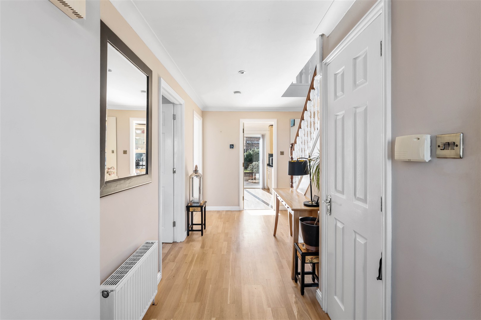Further enhancing the ground floor is a generous family room to the front, enjoying views over the gardens and offering a comfortable additional living space. In addition, there is a versatile room, currently utilised as a family room/home office.