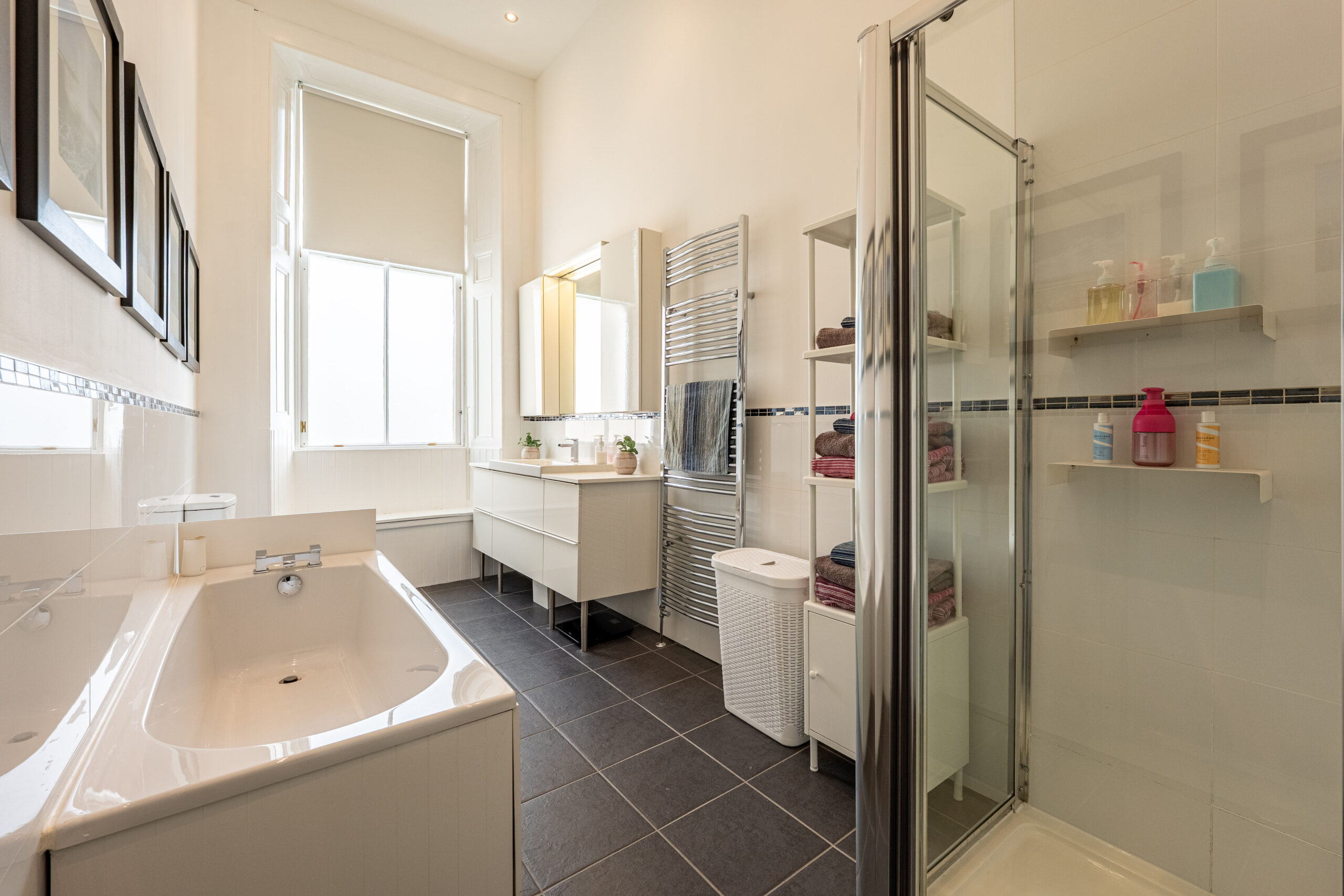 2 Leslie Road is within one mile of the many independent shops, coffee houses, restaurants, gastropubs and bakeries in Pollokshields and neighbouring Strathbungo. More extensive facilities are available at the Crossmyloof Morrisons store or the Sainsburys Local store on Darnley Road. Many cultural and recreational pursuits are available within the area including at the Tramway Theatre, Maxwell Park, Queens Park and Pollok Country Park, including the well renowned Burrell Collection Museum. Pollokshields Library is a short walk down the street and sporting pursuits are available at the nearby Titwood Tennis and Bowling Clubs and Clydesdale Cricket Club. Pollokshields East and West train stations are within half a mile, Shields Road underground station is one mile away and the M77, M74 or M8 connect the Southside of Glasgow to Scotland’s motorway network. The property is also served by a number of nearby bus routes.