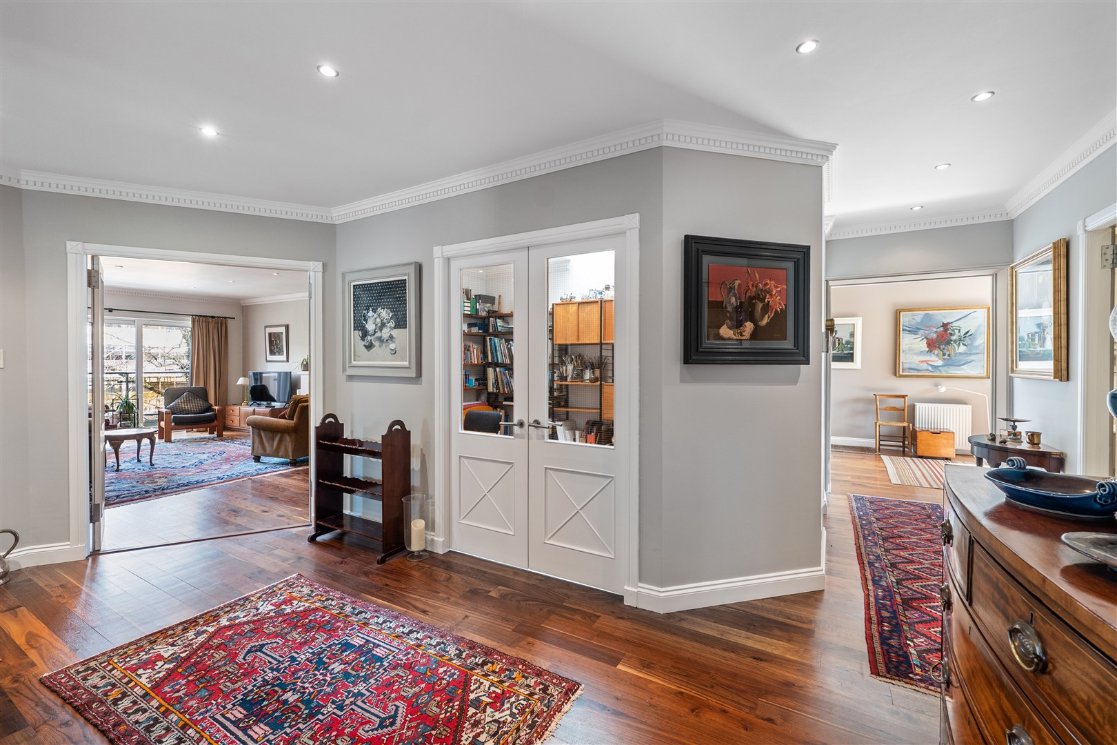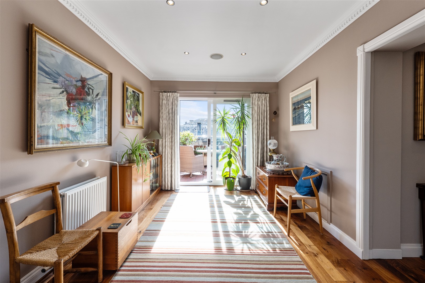 Accessed via a private lift opening directly into the apartment, the property offers an outstanding level of privacy and security, with exclusive coded access ensuring no other residents can reach the top floor, creating a unique, almost detached-home feel. Upon arrival, you are welcomed into a bright and spacious upper hallway, flooded with natural light and offering a wonderful sense of openness. This versatile area can be utilised as a home office, reading nook or additional relaxing space, further enhancing the flexibility and lifestyle appeal of the home, and also opening directly onto the private south-facing terrace, filling the space with an abundance of natural light.