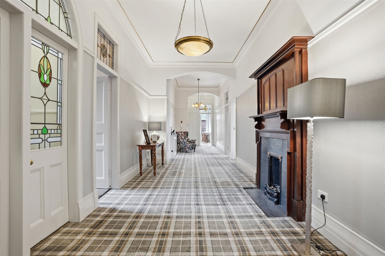 Throughout the apartment there is a remarkable sense of character and heritage, with a wealth of original period features including ornate cornicing, decorative ceiling roses, traditional fireplaces, detailed timberwork, deep skirtings, and impressive ceiling heights. Stunning original stained glass further enhances the charm and craftsmanship of this exceptional home.