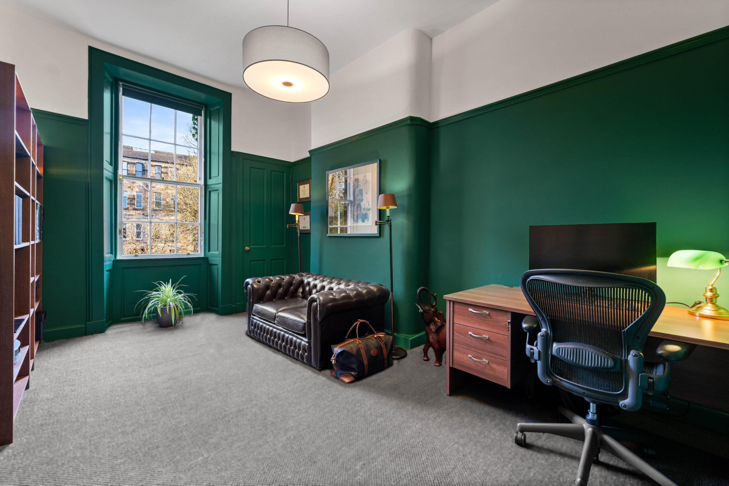 Strathbungo is a village within the city with a strong community feel on the doorstep of independent restaurants, coffee houses, shops and bars. Queen’s Park is at the end of the Square, providing recreational space, tennis courts, children’s play areas and a regenerated bandstand. Pollokshields tennis and bowling clubs are within easy reach, as are Pollok Park and the Burrell Collection. Pollokshields West train station is approximately 500 yards away, the last stop before Glasgow Central Station. State or private schooling is available locally at primary and secondary level.