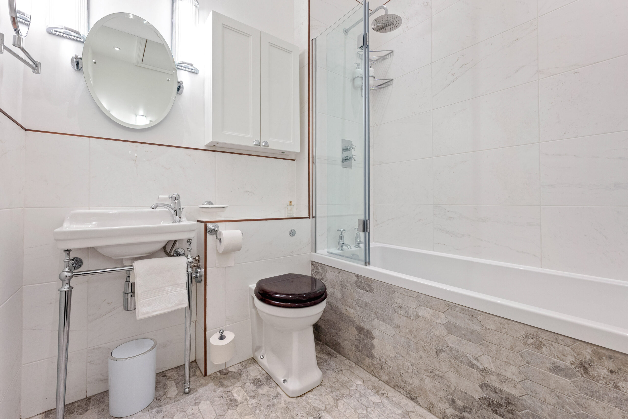 From ground floor, another fixed stair leads to garden level where an outstanding open plan kitchen features a centre island, bespoke cabinetry and walk-in pantry cupboard. A further guest bedroom, a contemporary shower room and a quintessential utility room with door to rear garden completes the accommodation.