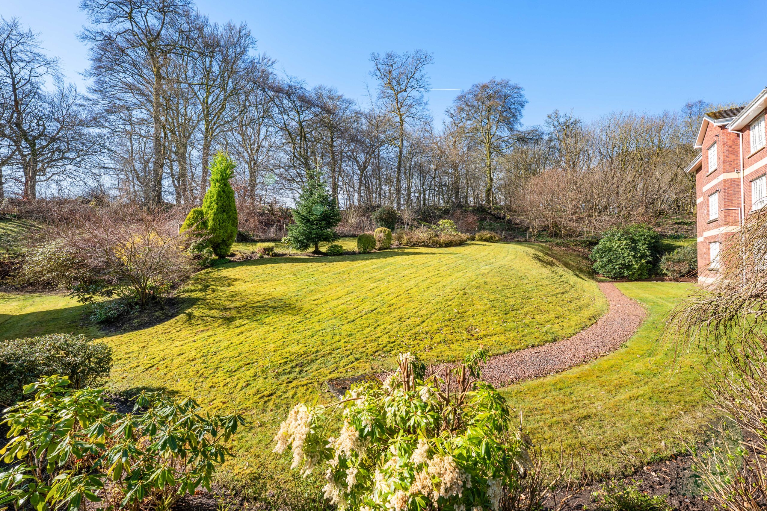 An exceptional first floor flat (top) by Dickie Homes within this private, secluded enclave in Mearnskirk.