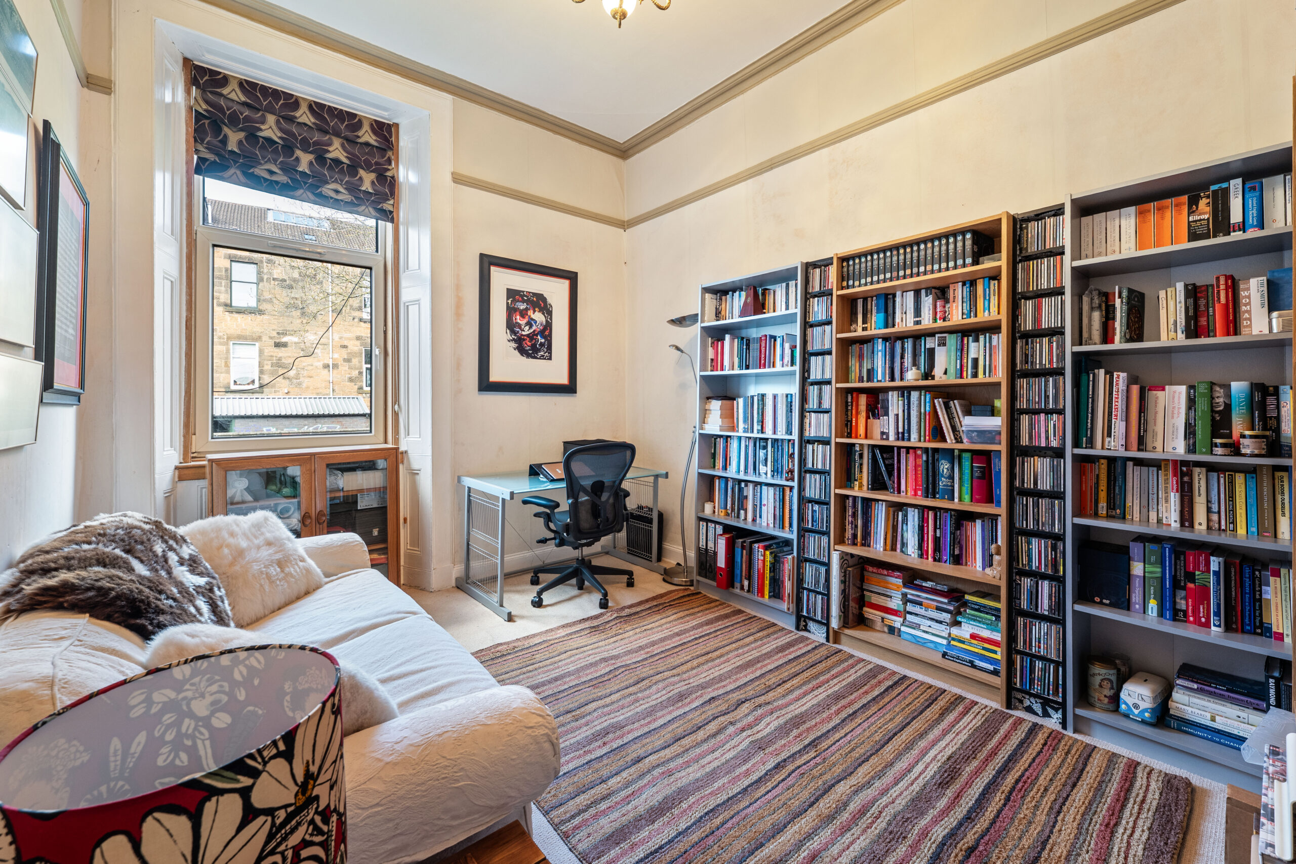 59 Stanmore Road is close to the popular independent coffee houses, restaurants, bars and shops in Mount Florida, Battlefield and across Queen’s Park into Strathbungo. Recreational pursuits are available at Queens Park itself and Mount Florida train station is approximately 600 yards from the front door providing several services an hour into the city centre.