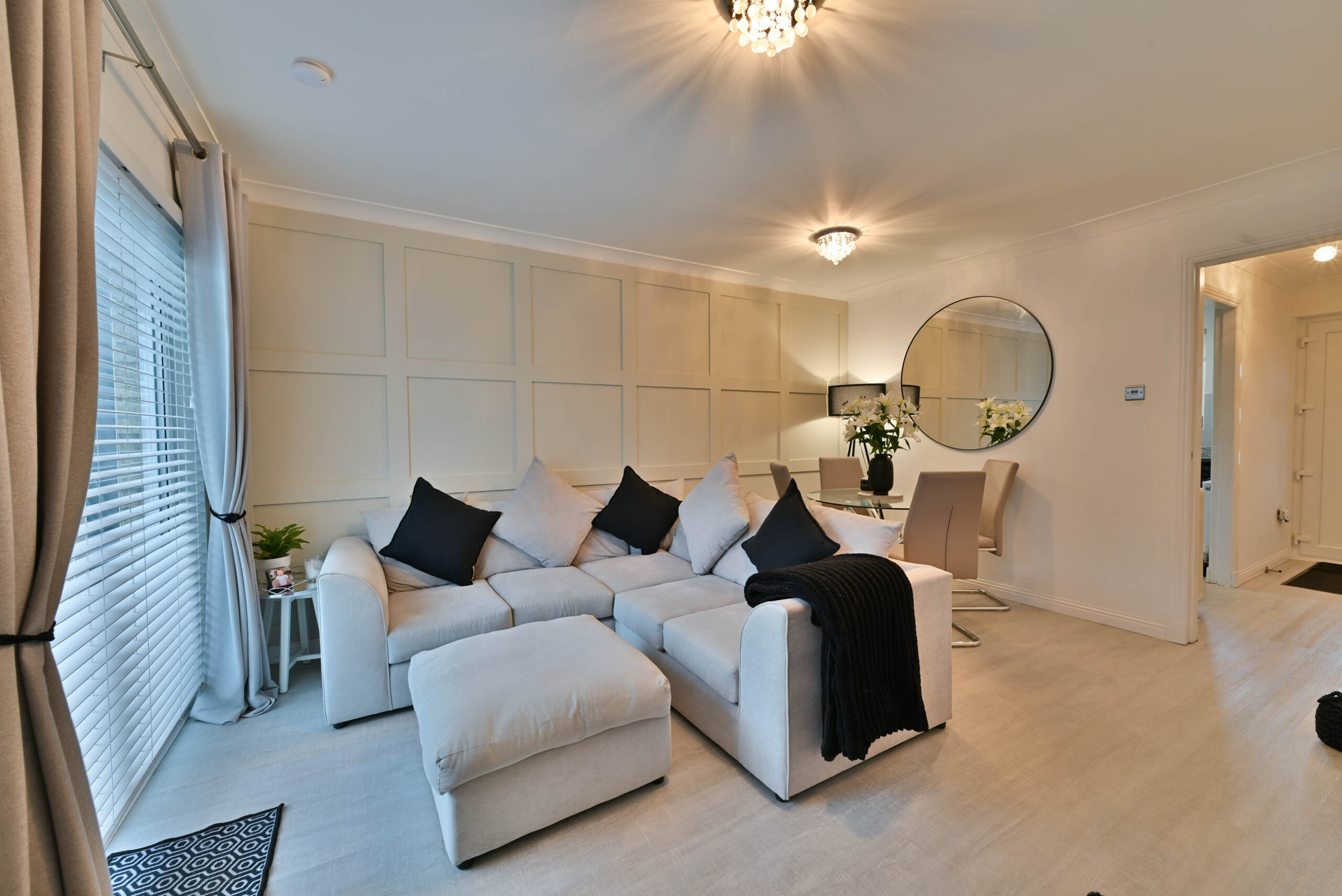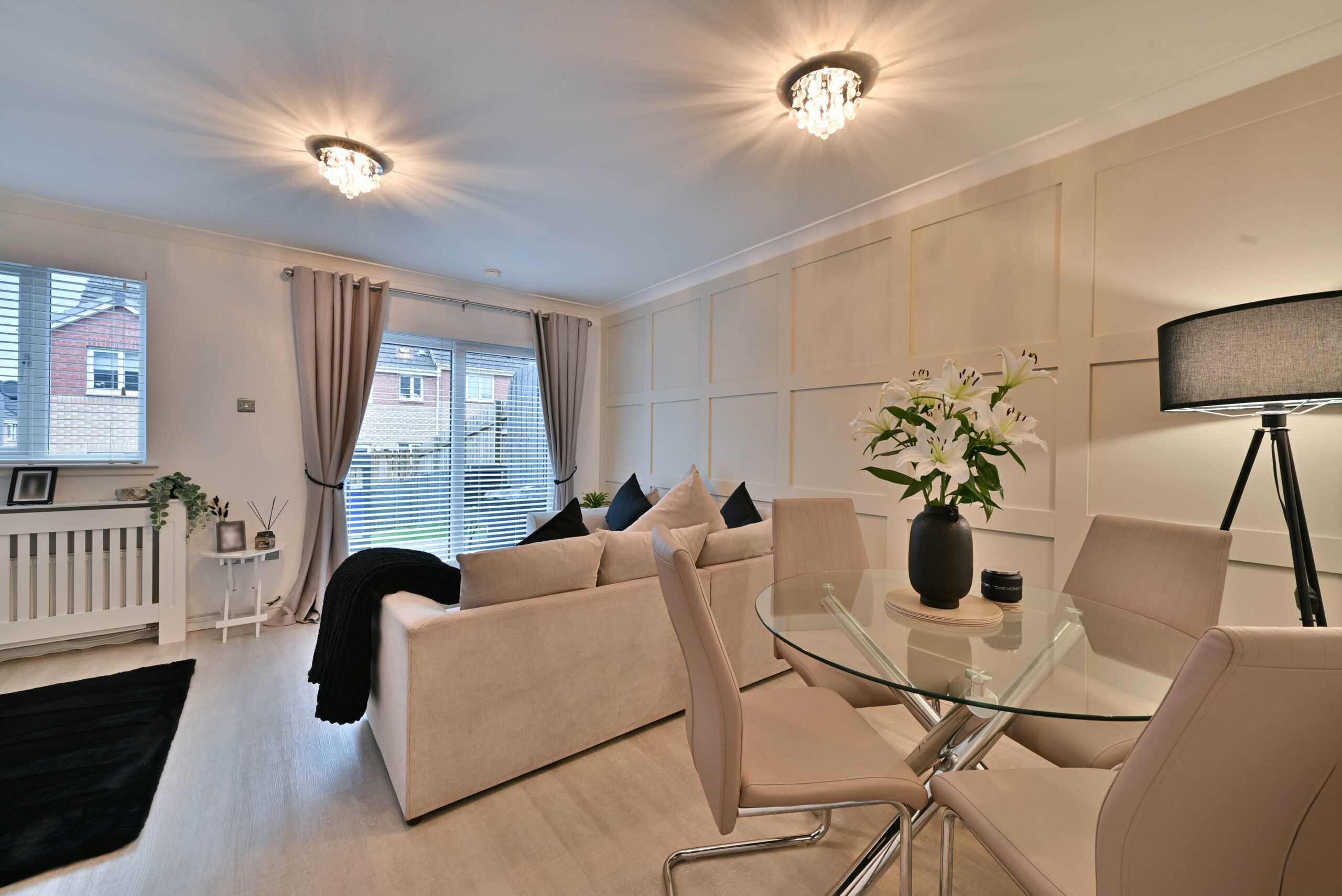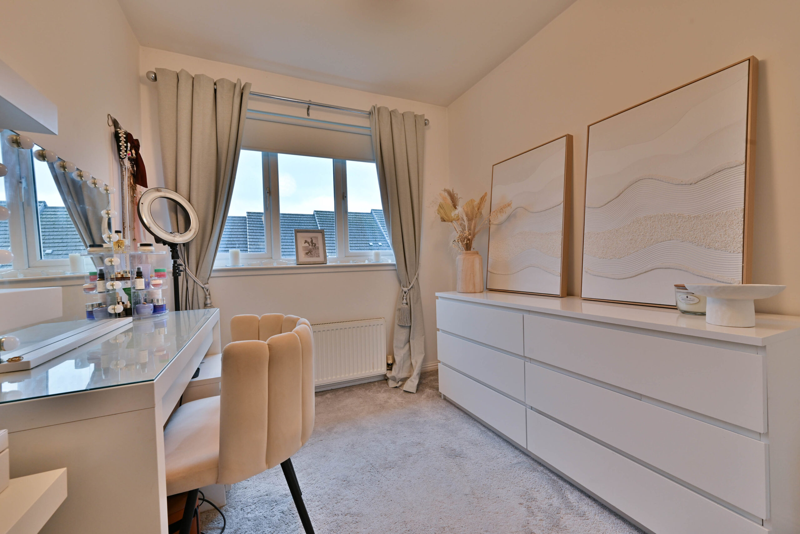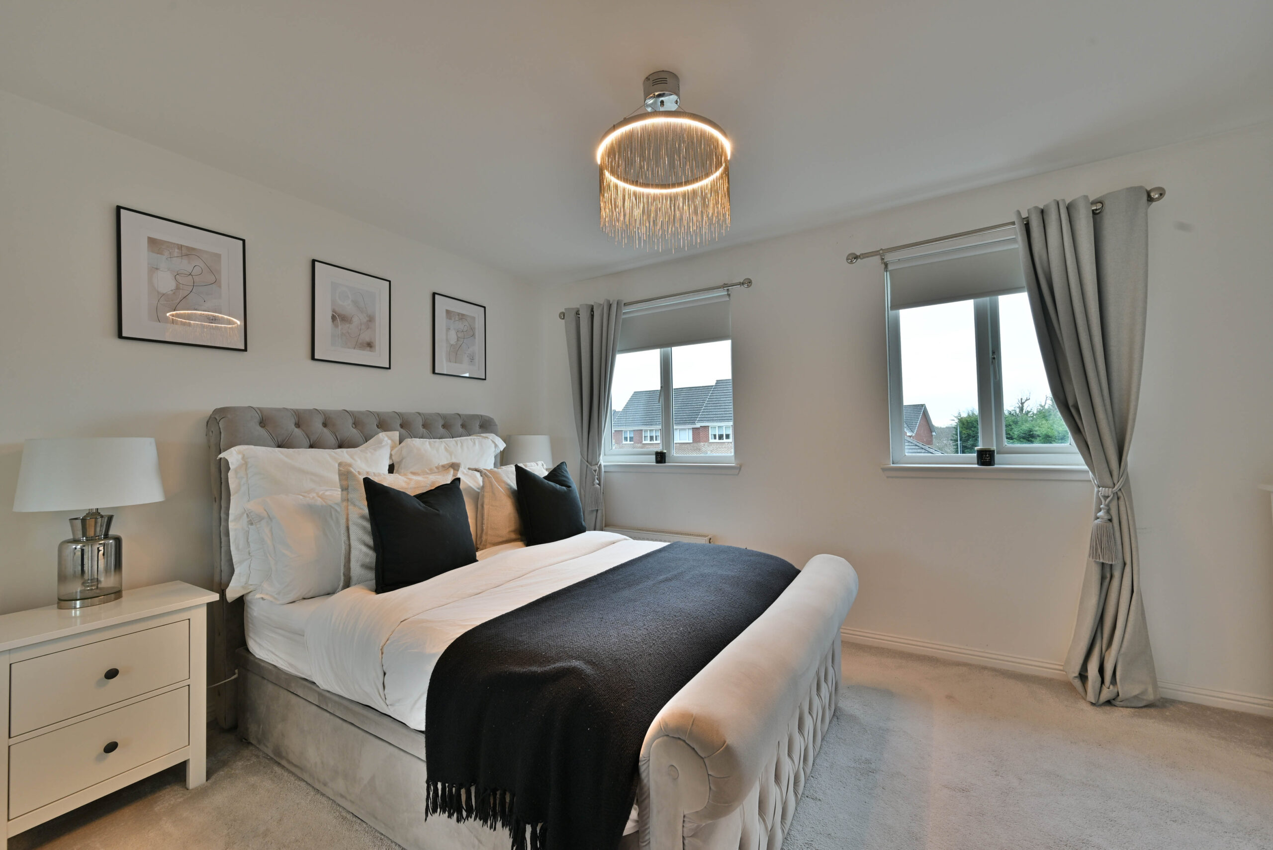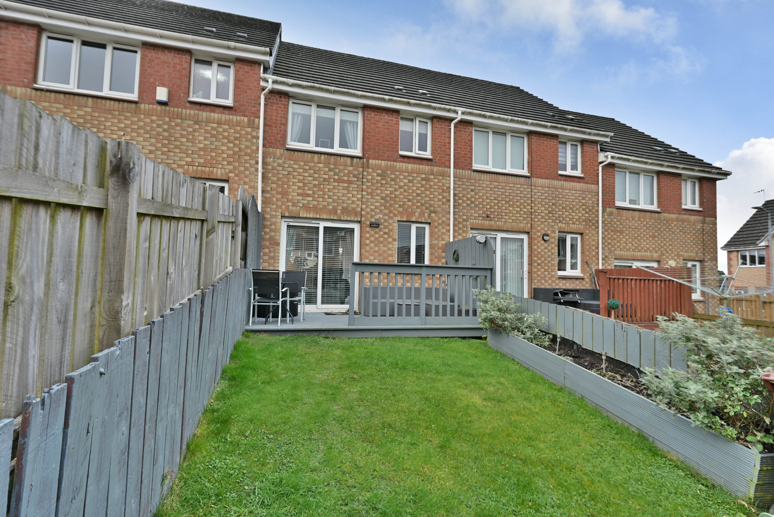 An impressive modern home positioned in this popular residential development by O’Brian Homes within the historic town of Paisley. Set within a small cul-de-sac off Strathcarron Drive with an allocated parking space and additional spaces for visitors. The landscaped rear gardens feature a timber deck ideal for outside dining overlooking a lawn, with raised beds and a timber fence boundary.