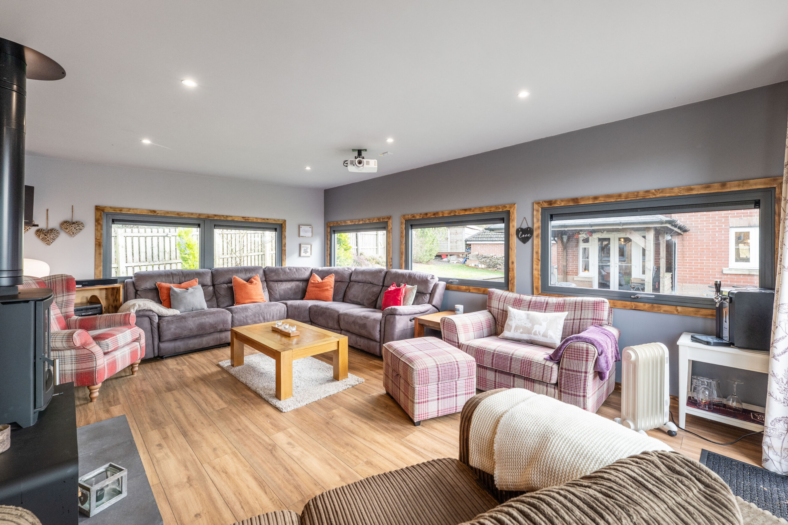 Situated in one of the area’s most coveted pockets, just moments from the scenic Calderglen Country Park, this stunning five-bedroom, three-reception detached villa by Bryant Homes is a highly impressive family home. Set on a generous private corner plot with a sweeping driveway for multiple vehicles and a detached double garage, the home has been meticulously maintained both inside and out, with high quality finishes throughout. This distinguished residence effortlessly blends refined living with practical family comfort.