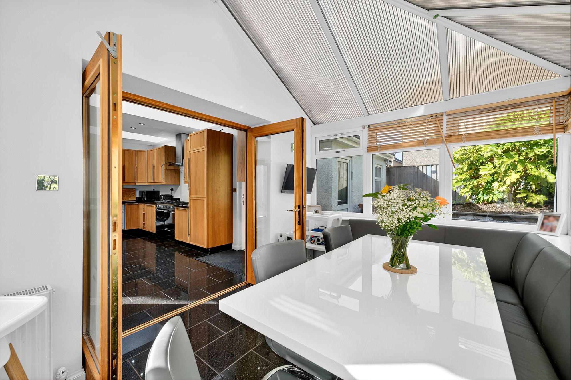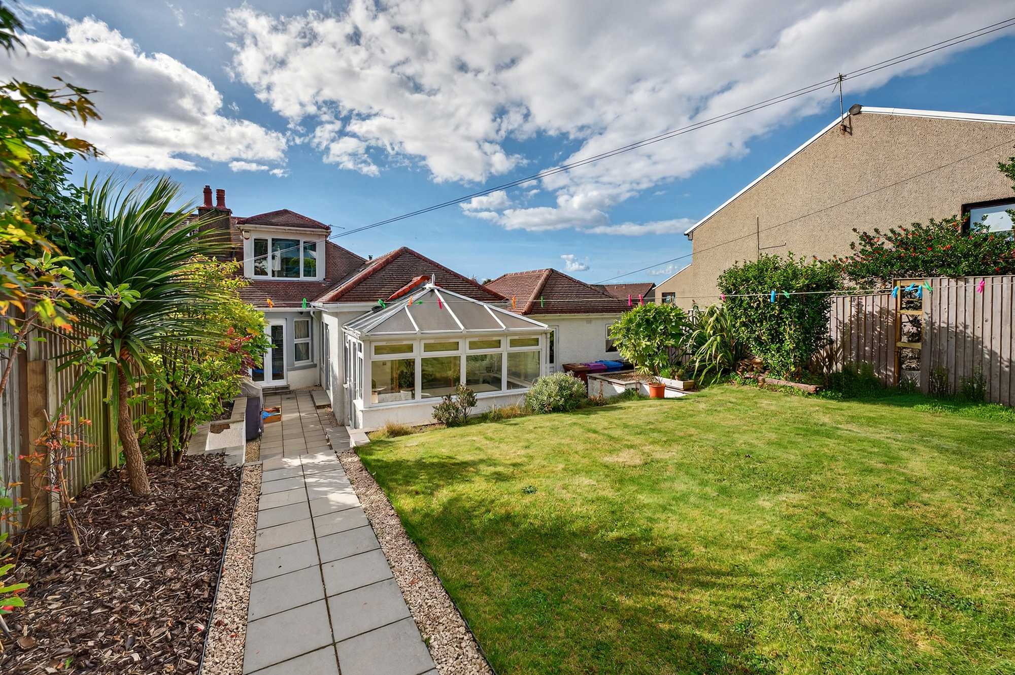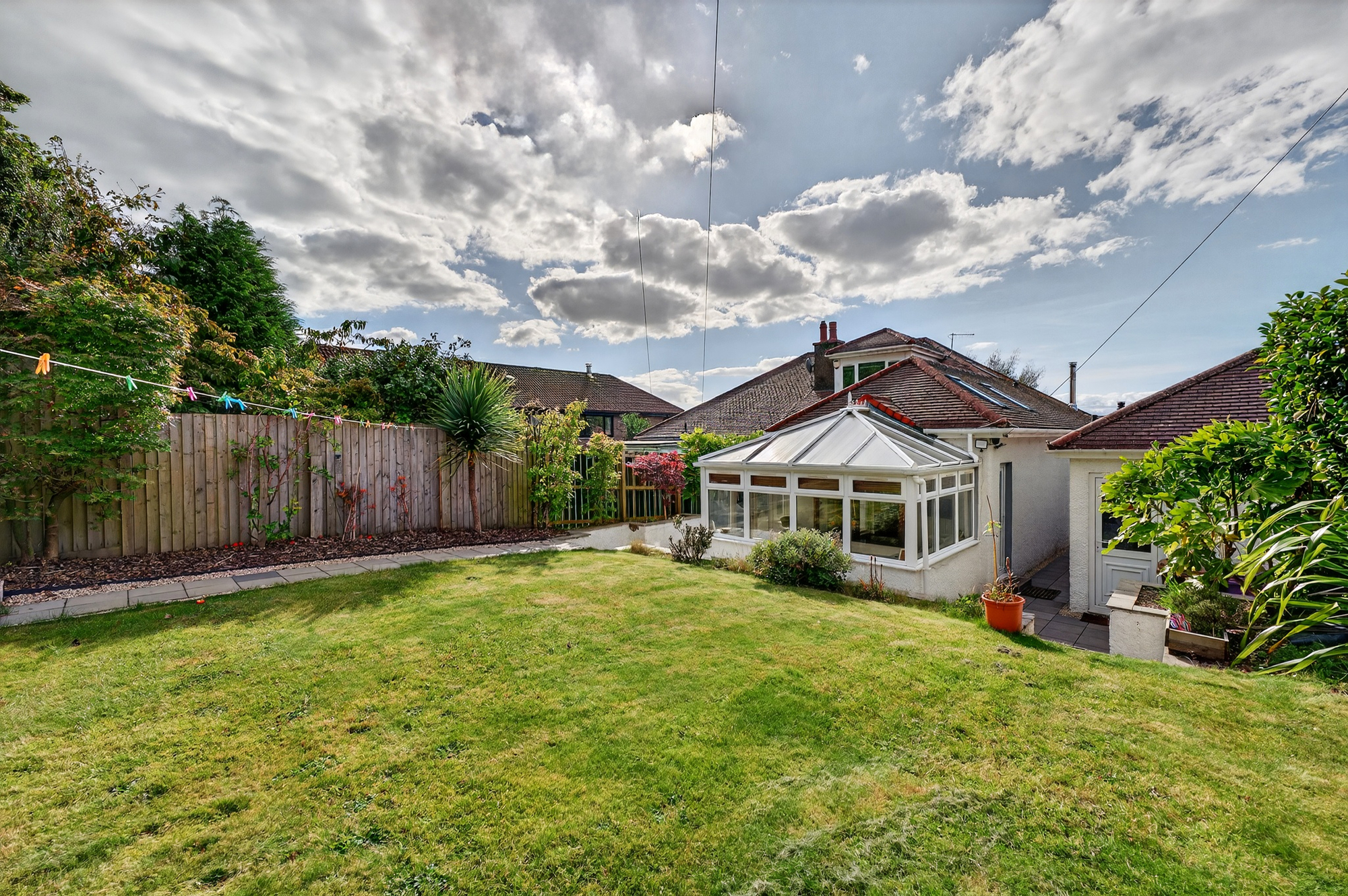 The immaculate accommodation on offer extends to a welcoming reception hallway which gives access to the main lower apartments with the lounge set to the front of the home with its feature bay window, two bedrooms with bedroom one giving access to the rear garden grounds, family bathroom with under floor heating, great modern dining kitchen, complete with speakers, offers a perfect space for both everyday living and entertaining. Leading off from the kitchen is a bright conservatory that provides a warm, sociable space, ideal for relaxing or hosting guests. From here, doors open onto the feature patio - the perfect spot for summer drinks or a lazy morning coffee. On the upper level there can be found two bedrooms, bedroom three with a fabulous en-suite and elevated views out to the Firth of Clyde. The property has gas central heating and double glazing. In addition, there is driveway parking to the side leading to a detached garage equipped with power and light. The property has neatly maintained front and rear gardens. The rear gardens feature a lawned area, paved patio, and broad raised sun terrace, brick terracotta pizza oven, outside seating area just outside the kitchen & lower main bedroom.