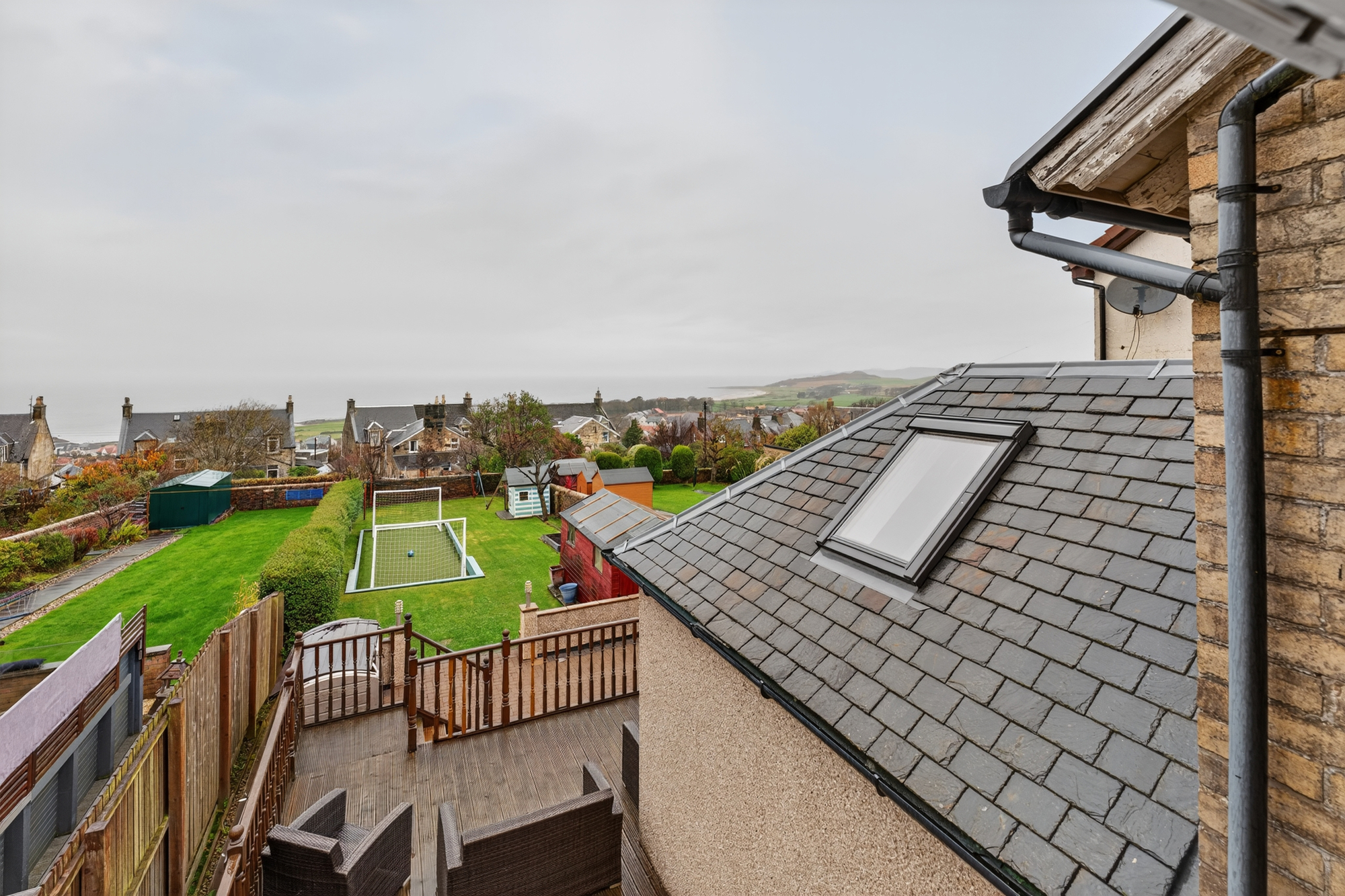 Upstairs, there are three beautifully presented bedrooms – with the rear-facing room enjoying views over the estuary and Arran. The family bathroom is a generous size complete with free standing bath and walk-in shower.