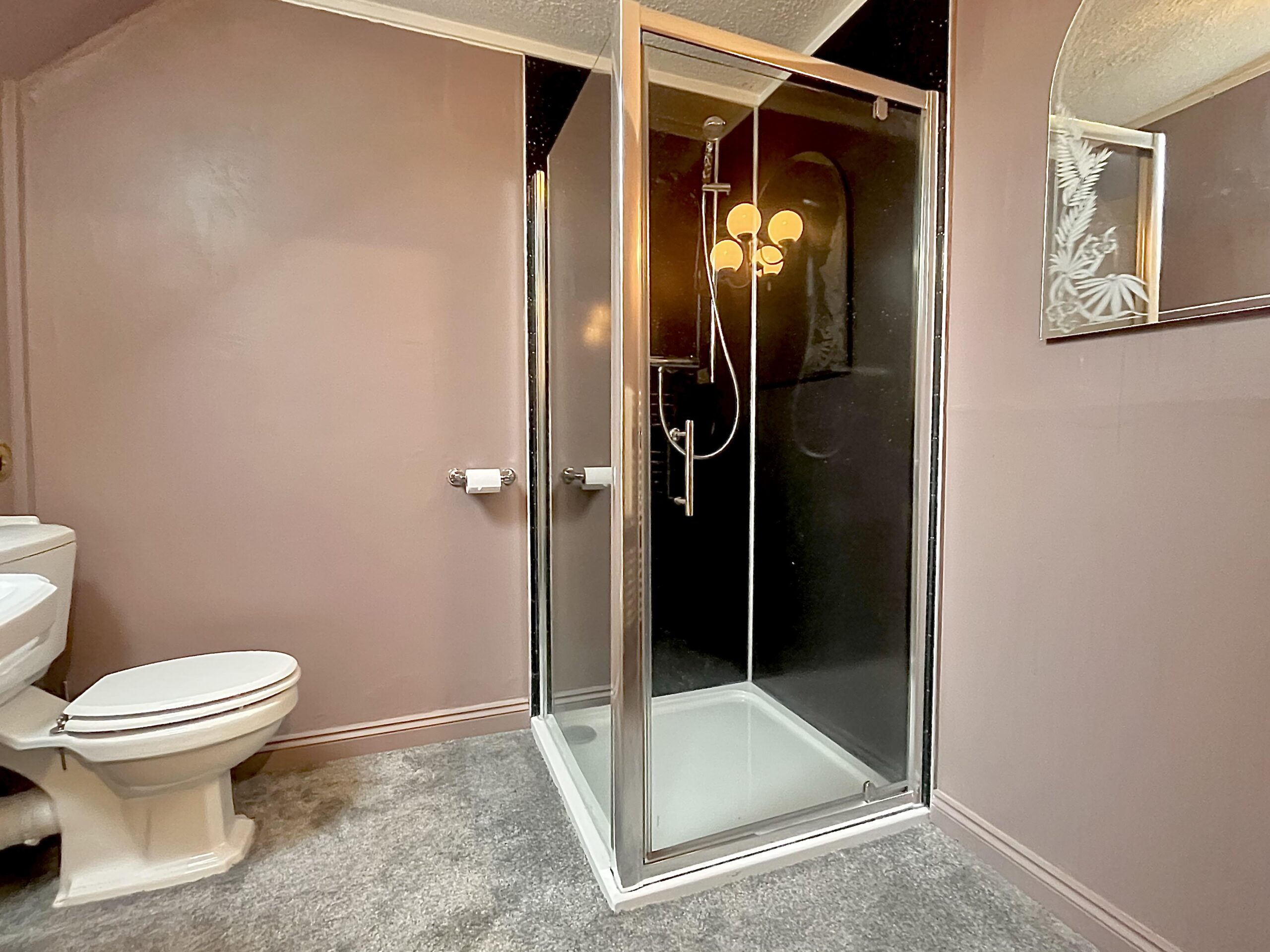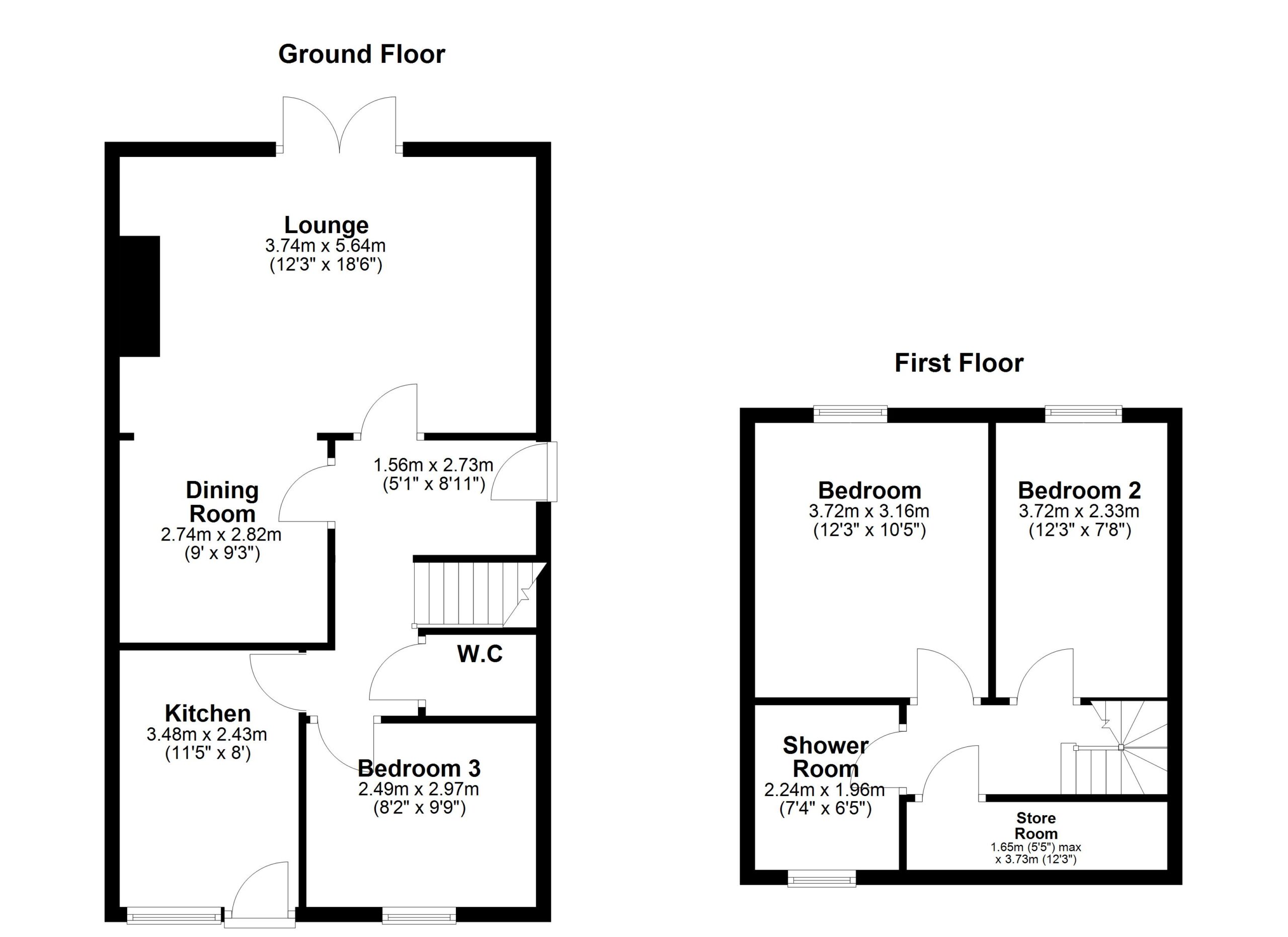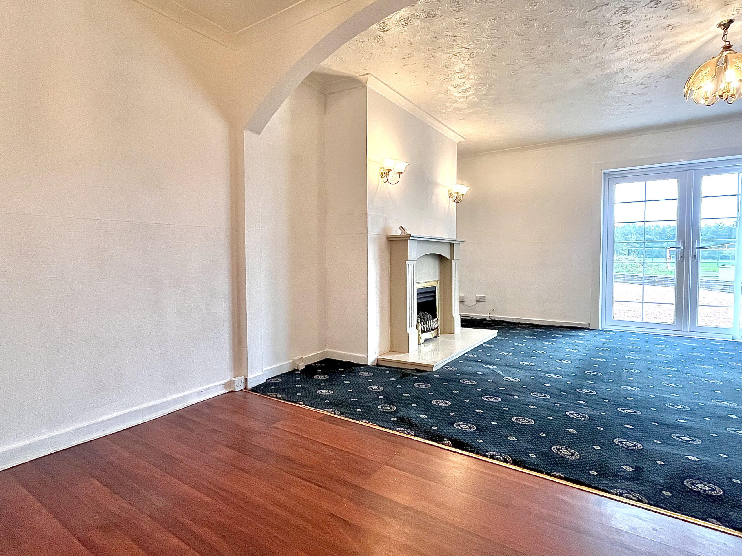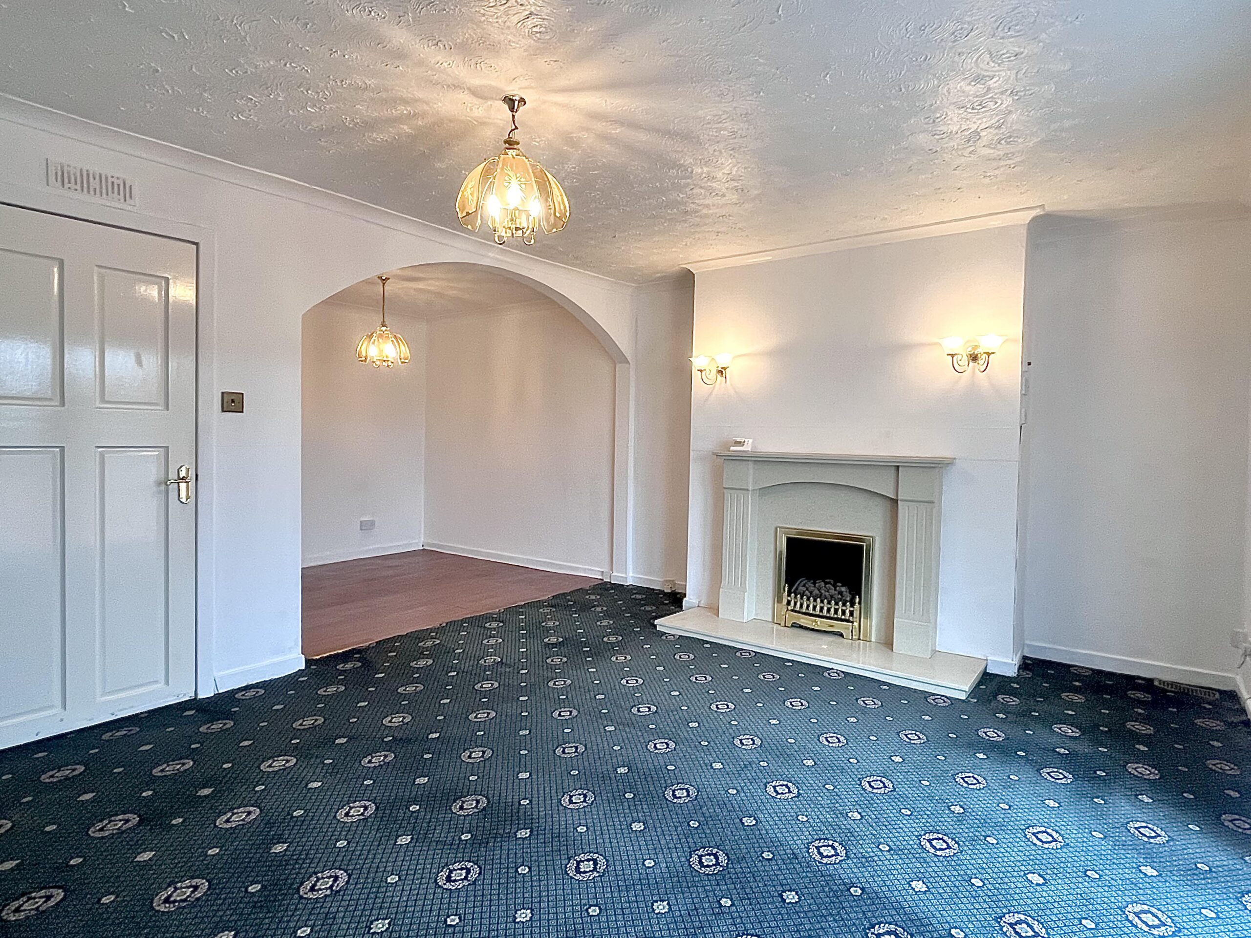 The accommodation is laid out over two levels. The welcoming reception hallway provides access to a convenient ground floor W.C. and leads through to a bright and spacious lounge featuring French doors that open out to the front garden, as well as a focal point fireplace. The lounge flows seamlessly into an open-plan dining area, which offers versatility and could easily be converted to create a fourth bedroom, if desired. The fitted kitchen overlooks the rear garden and offers direct access to the patio and garage. Also on the ground floor is a double bedroom enjoying garden views. Upstairs, there are two generous double bedrooms, a modern shower room with three-piece suite, and a useful storage room.