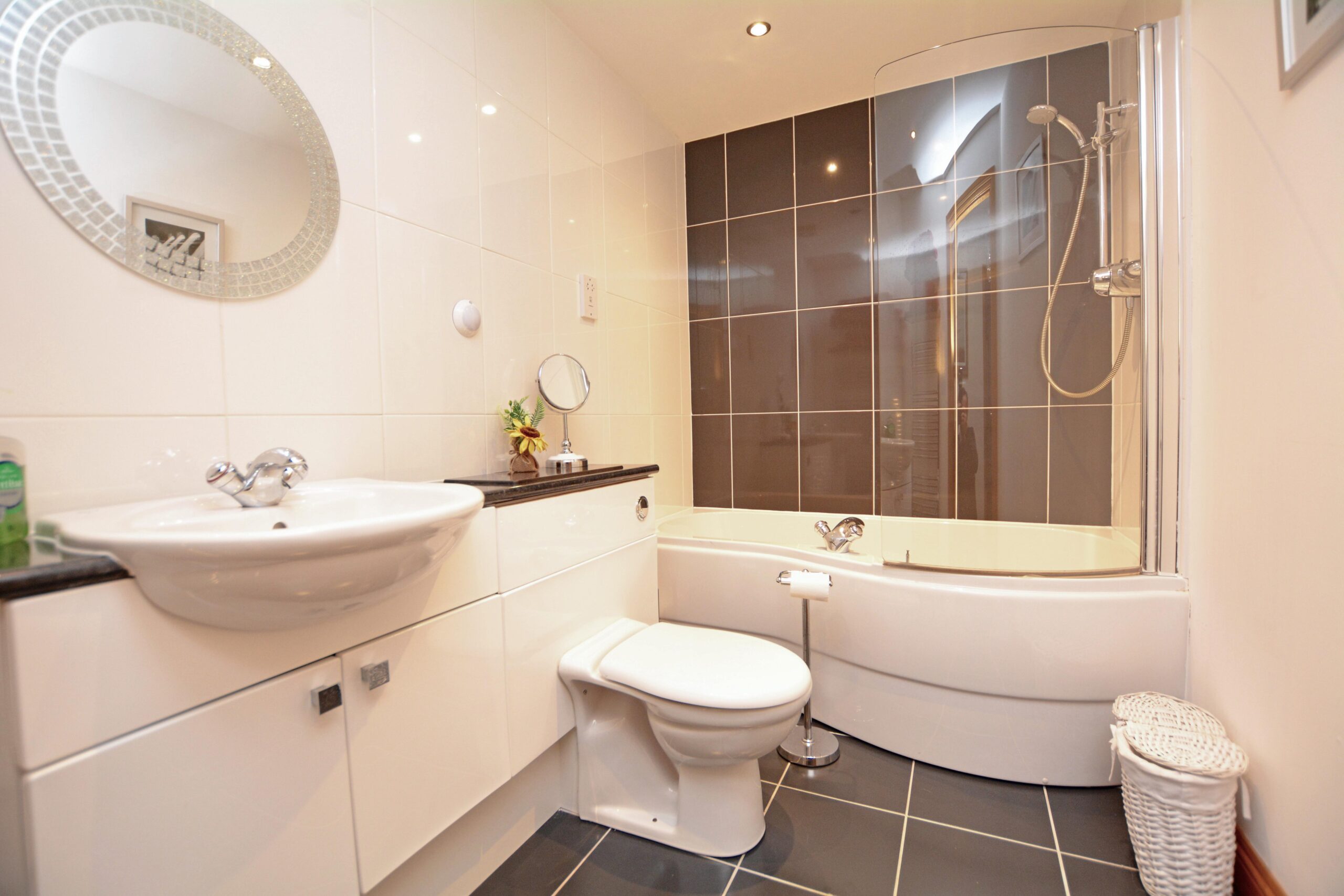 Number 1A Glenford Place is an elevated ground floor apartment with exceptional views across the Firth of Clyde to Arran. The property is presented in very good order and benefits from all the conveniences one would expect from a new home including a quality fitted kitchen with integrated appliances, luxury sanitary ware, extensive cupboard and wardrobe space, neutral decoration, gas central heating with a ‘Vaillant’ boiler, double glazing and secure entry.