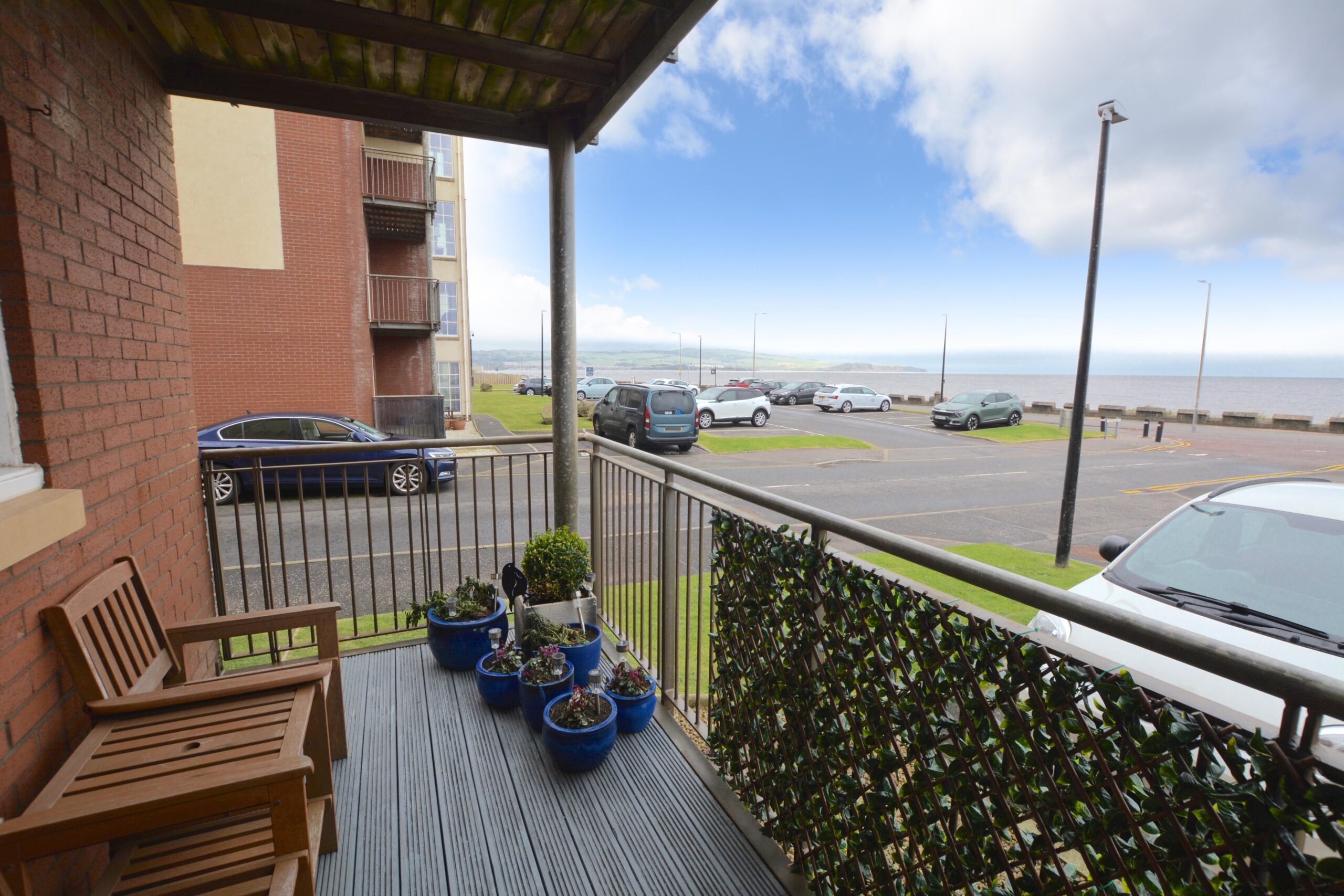 A beautifully presented modern elevated ground floor apartment with exceptional views across to Arran, spacious balcony, quality finishes and private parking.