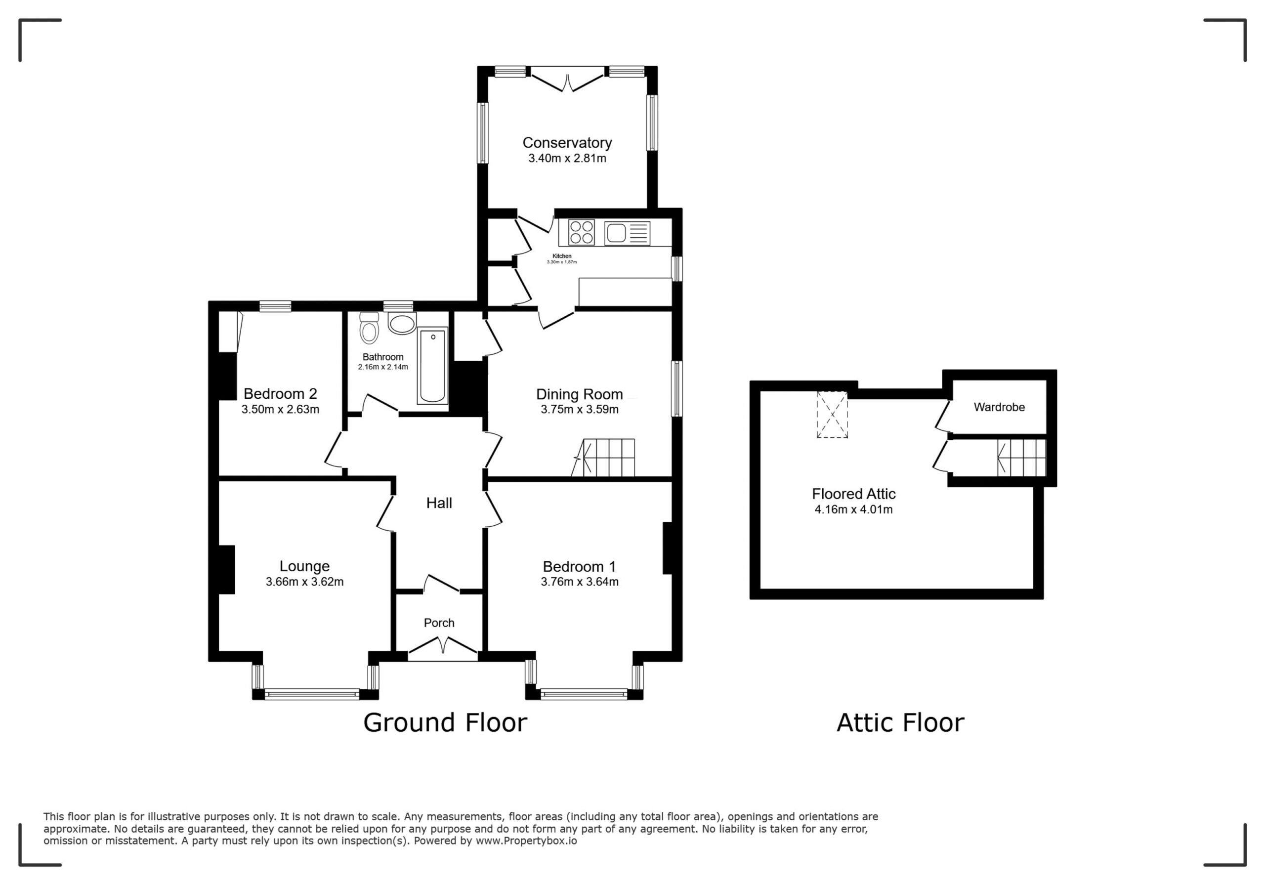 The excellent accommodation on offer extends to the entrance vestibule which leads into the reception hallway, good sized lounge, formal dining room, kitchen, bright conservatory with views over the rear garden grounds and up to the local countryside, two double bedrooms and family bathroom. There is a floored attic which is ideal for storage and is accessed via a staircase from the dining room. The property has gas central heating and double glazing. There are extensive garden grounds which are mainly laid to lawn and a driveway for several vehicles. To complement the garden grounds there is a garage to the rear of the home. Early viewing is highly recommended to appreciate the accommodation and location on offer.