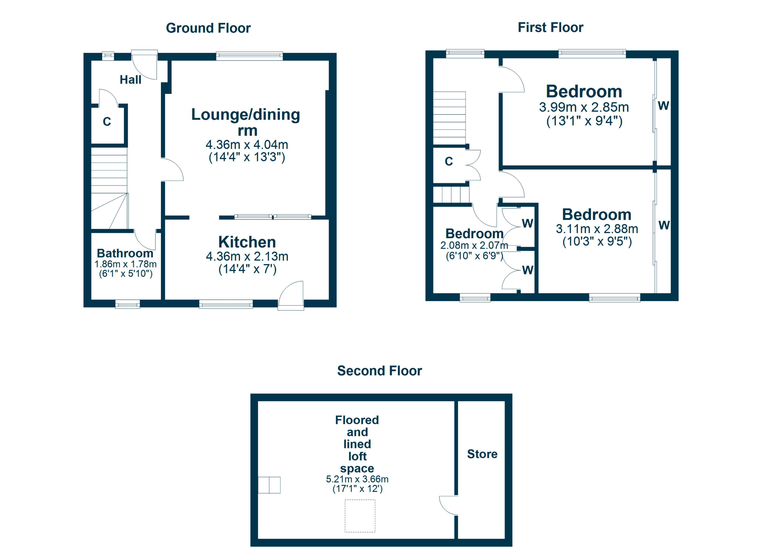 In summary the accommodation extends to, on the ground floor, a reception hallway, front facing lounge/dining room with feature fireplace, modern fitted kitchen and three piece bathroom. Upstairs there are three double bedrooms. Off the first floor landing is a permanent stair to the floored and lift loft.