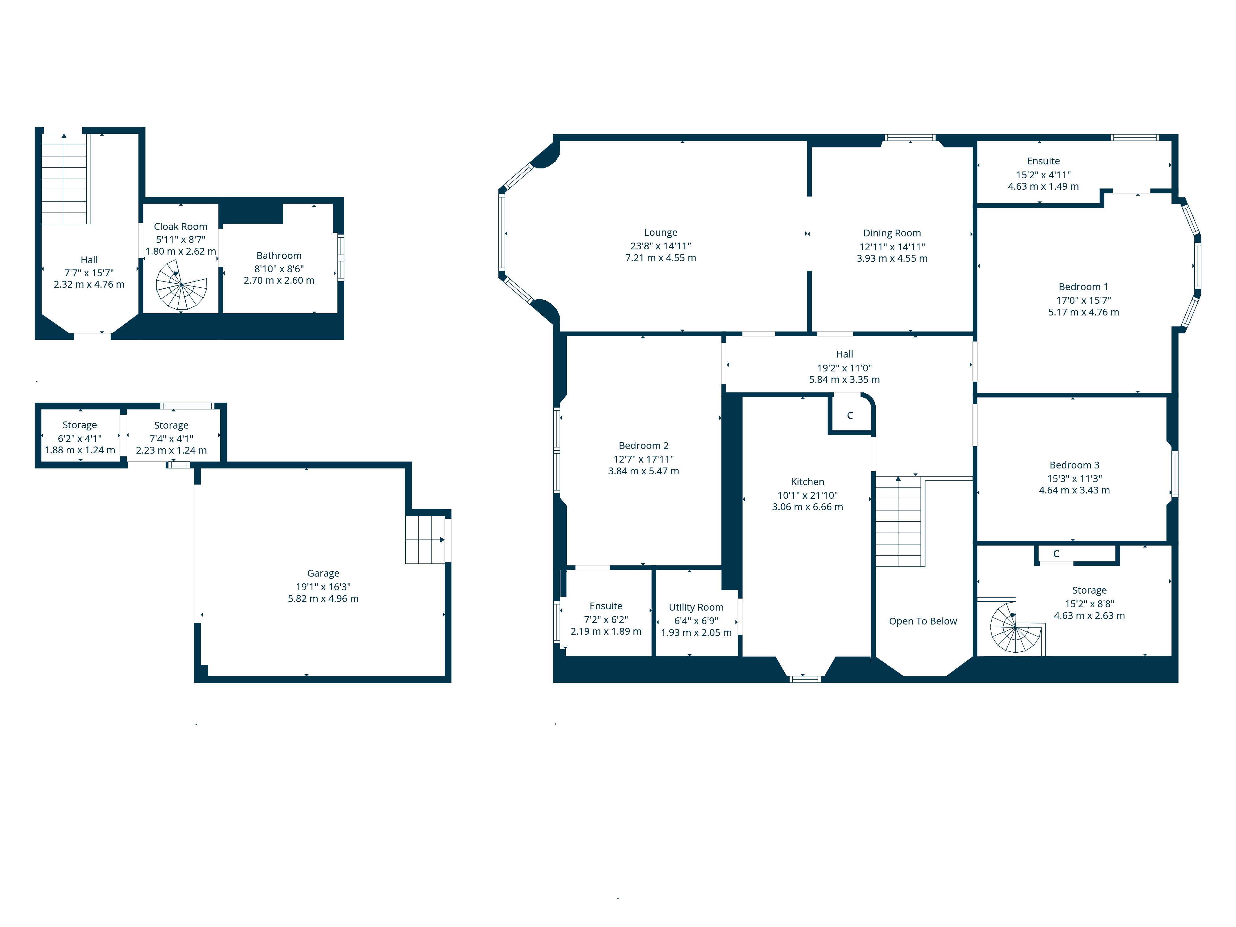 The complete accommodation extends to: private access stair through entrance portico to lower hallway, a section of the original timber staircase remains to the upper landing with stunning stained glass rooflight and revealing superb formal lounge with Heta 8kw wood burning stove, deep bay window making the most of the open outlook and semi open plan access to the excellent formal dining room. The generous kitchen offers ample space for dining table and chairs, a walk-in utility/pantry, and a broad range of integrated Neff appliances which include; oven, microwave, warming drawer, induction hob, along with boiling water tap, fridge/freezer/wine cooler and waste disposal system. There are three bedrooms in total, the principal to the rear with great southerly views towards the gardens, and a beautifully appointed en-suite shower room with Phillipe Starck sanitaryware. Bedroom two also offers en-suite facilities, with bedroom three being a great guest room / office. Positioned adjacent to the lower hallway an outstanding bathroom/shower room and there is a spiral staircase leading to an additional storage space / study area.