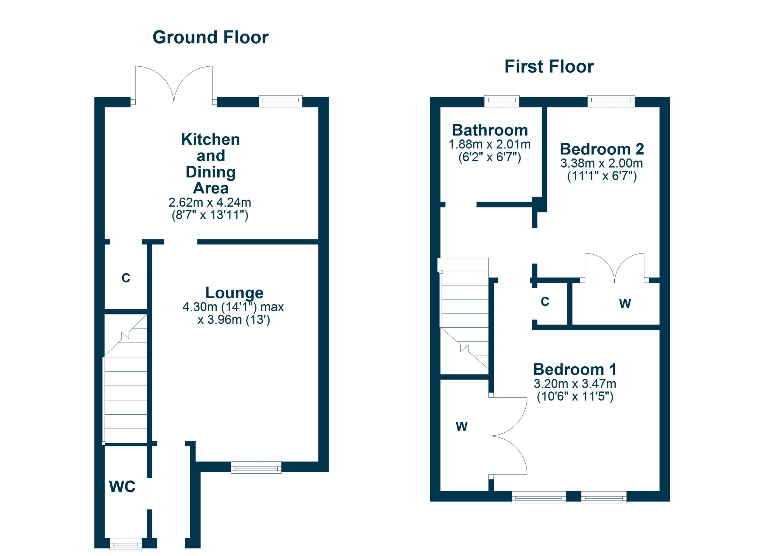 Upstairs, the property offers two spacious double bedrooms, both benefiting from built-in wardrobe storage, ensuring a clutter-free living environment. A modern family bathroom completes the accommodation, fitted with a three-piece suite and shower over the bath.