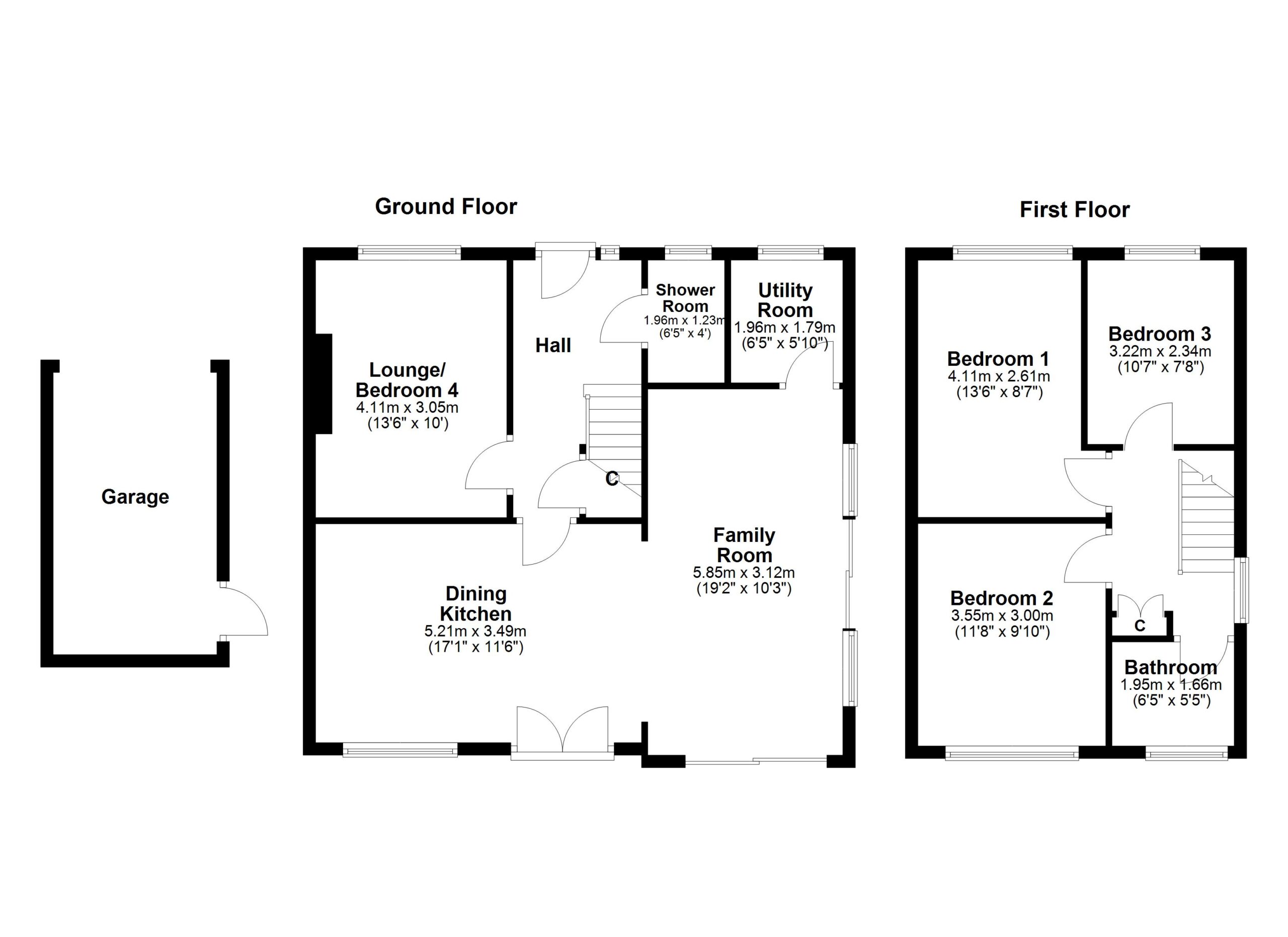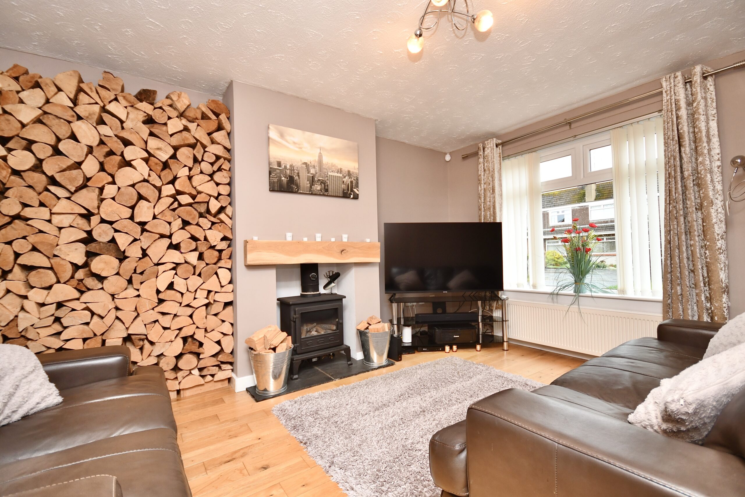 In more detail, the internal accommodation extends to an entrance hall with under stairs storage, a downstairs shower room suite, a lounge/ bedroom with a wood-burning stove, a luxury fitted dining kitchen with a breakfast bar, ample wall and base units, French doors out to the garden, a utility room and an open plan family room, with two sets of sliding patio doors out to the decking at the side and rear. On the upper floor there is a fitted family bathroom suite, storage and loft access off the landing, two large double bedrooms and a single bedroom with a fitted cupboard above the stairs.