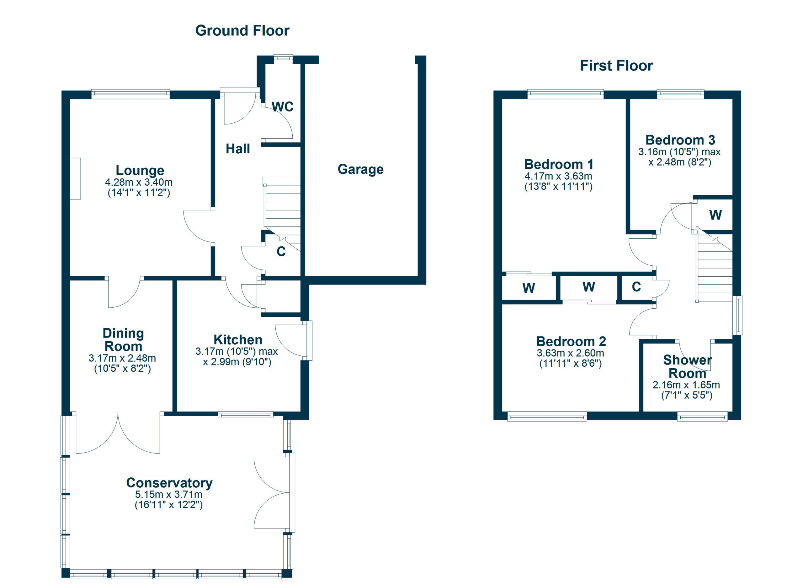 In more detail, the internal accommodation extends to an entrance hallway with under stairs storage and a downstairs WC, a spacious lounge with a feature fireplace and a doorway through to the dining room, which leads into the bright conservatory with French doors out to the garden, and a luxury fitted kitchen with a door out to the side. On the upper floor there are three large bedrooms with fitted wardrobes, storage and loft access from the landing, and a modern, fully tiled shower room suite.