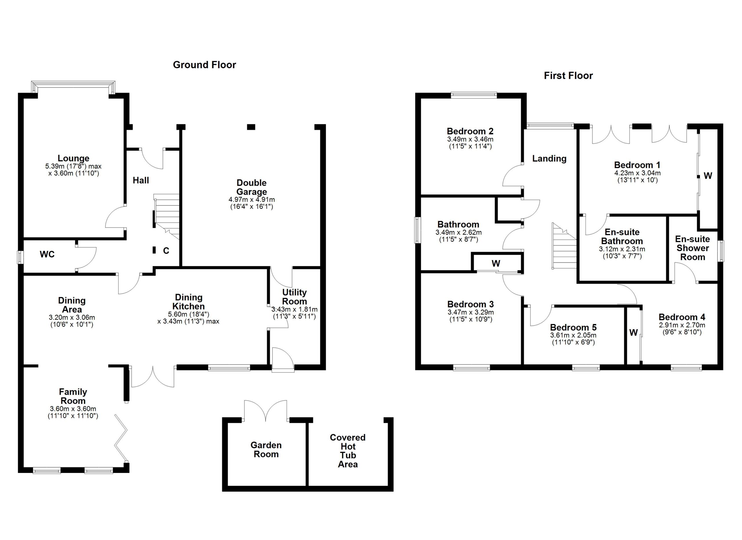 Externally the front garden is laid to lawn, with a wide block paved driveway parking and an integral double garage with electric roller doors. There is gated access at the side leading to the fully enclosed landscaped rear garden, which has excellent privacy, a large southwest facing entertaining patio area, lawn, decorative shrubs, fruit bushes and trees, and a sunken breakfast / BBQ terrace with a covered hot tub shelter and summer house / garden office. The installed hot tub is available to purchase by separate negotiation.