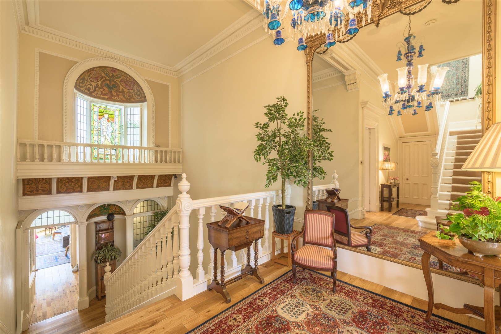 From the moment you step into the impressive entrance hallway, the home’s scale and elegance are unmistakable. Rich in period detail, it retains a wealth of original features including intricate cornicing, grand fireplaces, high ceilings, spectacular stained glass, and elegant bay windows that flood the interiors with natural light.