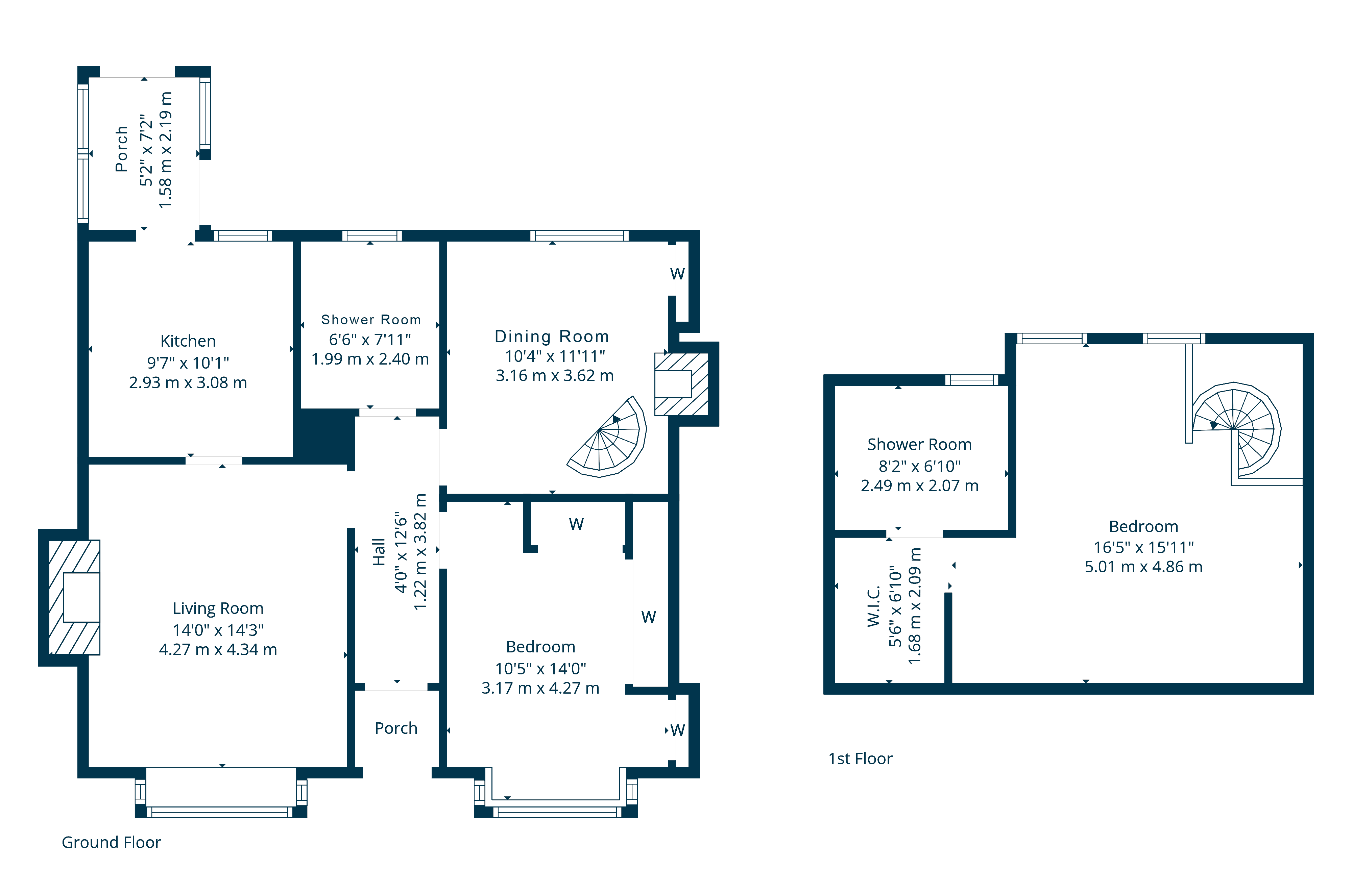 The accommodation in brief; entrance vestibule, reception hallway and a box bay windowed lounge leading through to a fitted kitchen with a rear porch/utility room. There is a box bay windowed bedroom with fitted wardrobes, a contemporary shower room/wc and a dining room with a real fire as well as a feature spiral staircase leading to a converted attic space. The impressive attic acts as a spare bedroom for our client with three rear pitch rooflights, a walk-in cupboard and an en-suite shower room.