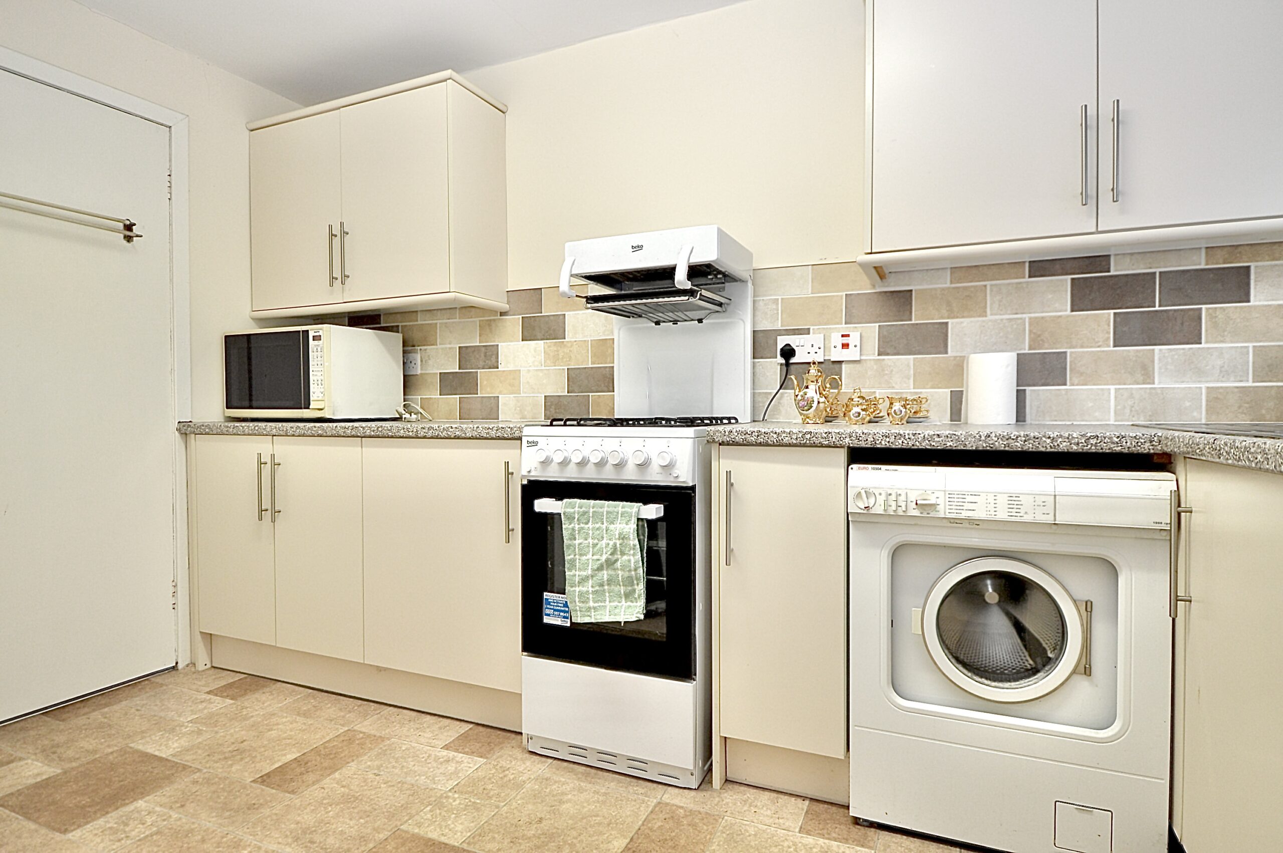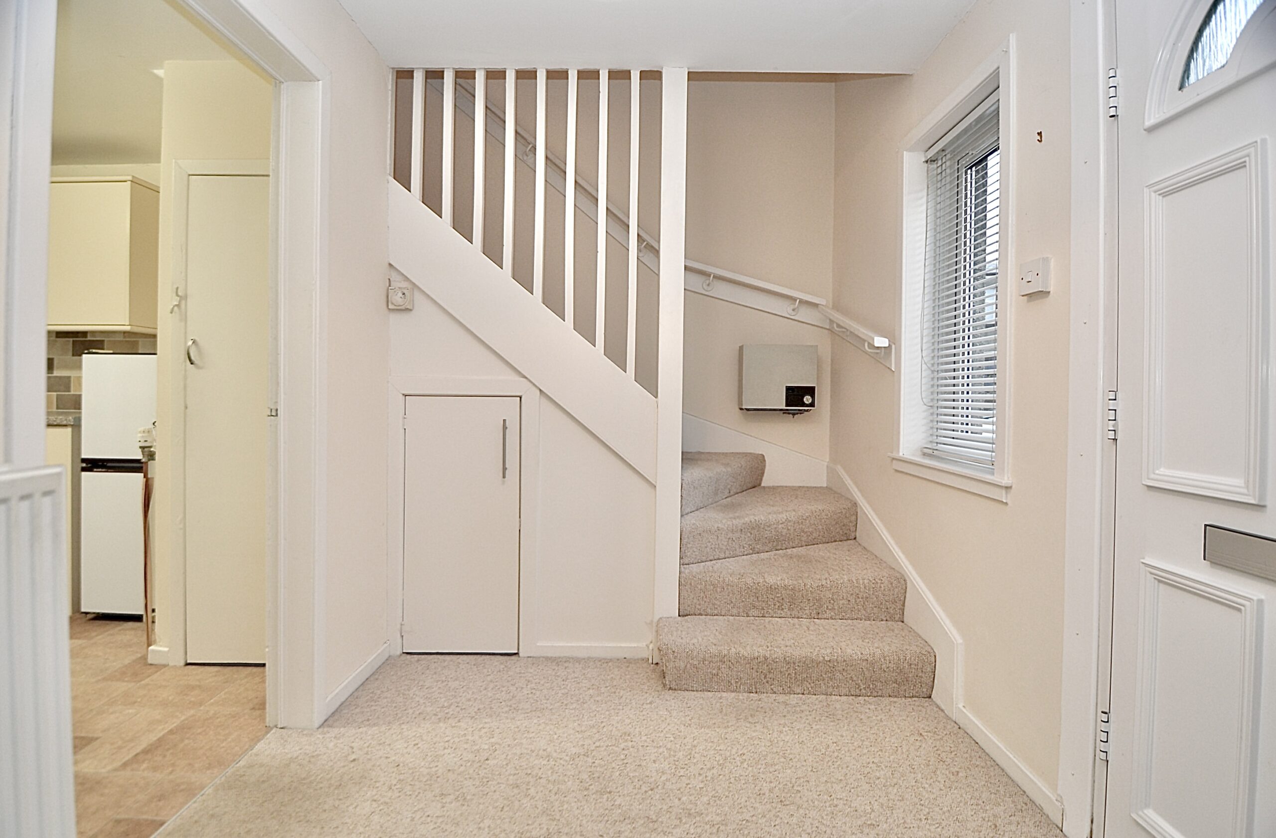 The accommodation is well laid out and inviting. The entrance hallway includes a useful understairs’ cupboard and leads through to a bright and comfortable lounge with a dining area positioned to the rear, creating a sociable space ideal for entertaining. The fitted kitchen sits at the back of the house and includes a door directly into the garden, making outdoor access easy and practical.