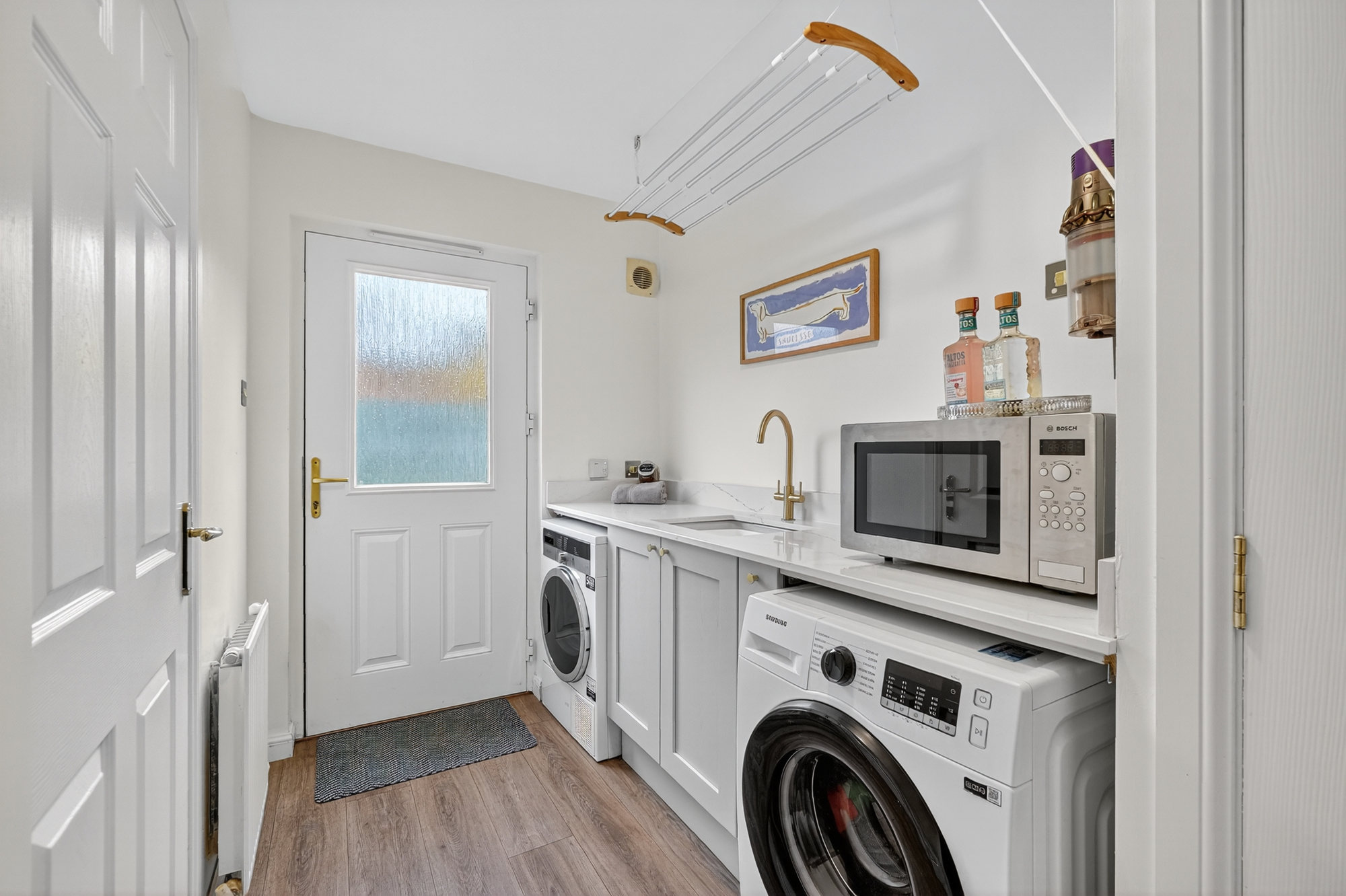 Features and benefits include a modern fitted kitchen (integrated appliances including Neff dishwasher, ‘Rangemaster’ cooker, Fridge freezer, Silestone work tops and fitted breakfast bar) and matching utility room, gas central heating with a ‘Worcester’ boiler housed in the garage, through and through fire between the lounge and dining area, two en-suite shower rooms, quality floor coverings, double glazing, generous wardrobe/cupboard space and neutral decoration.