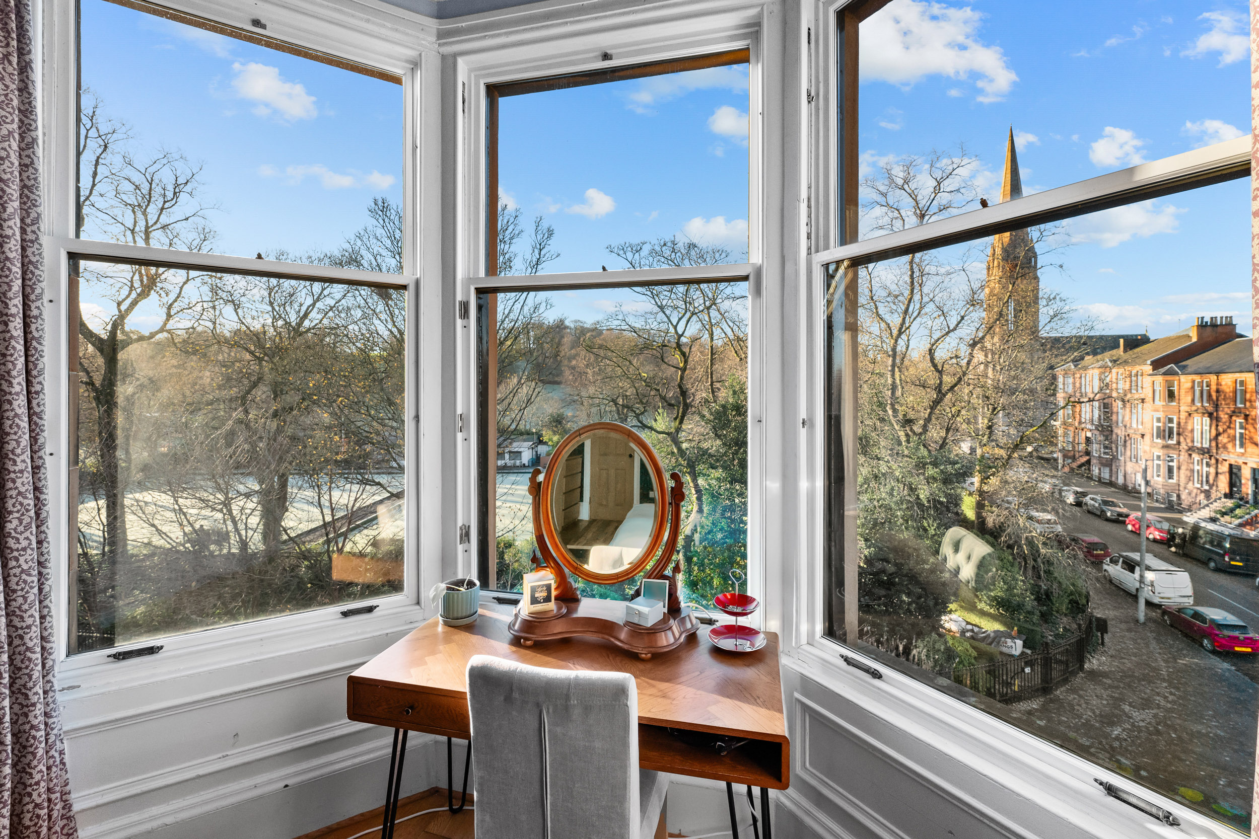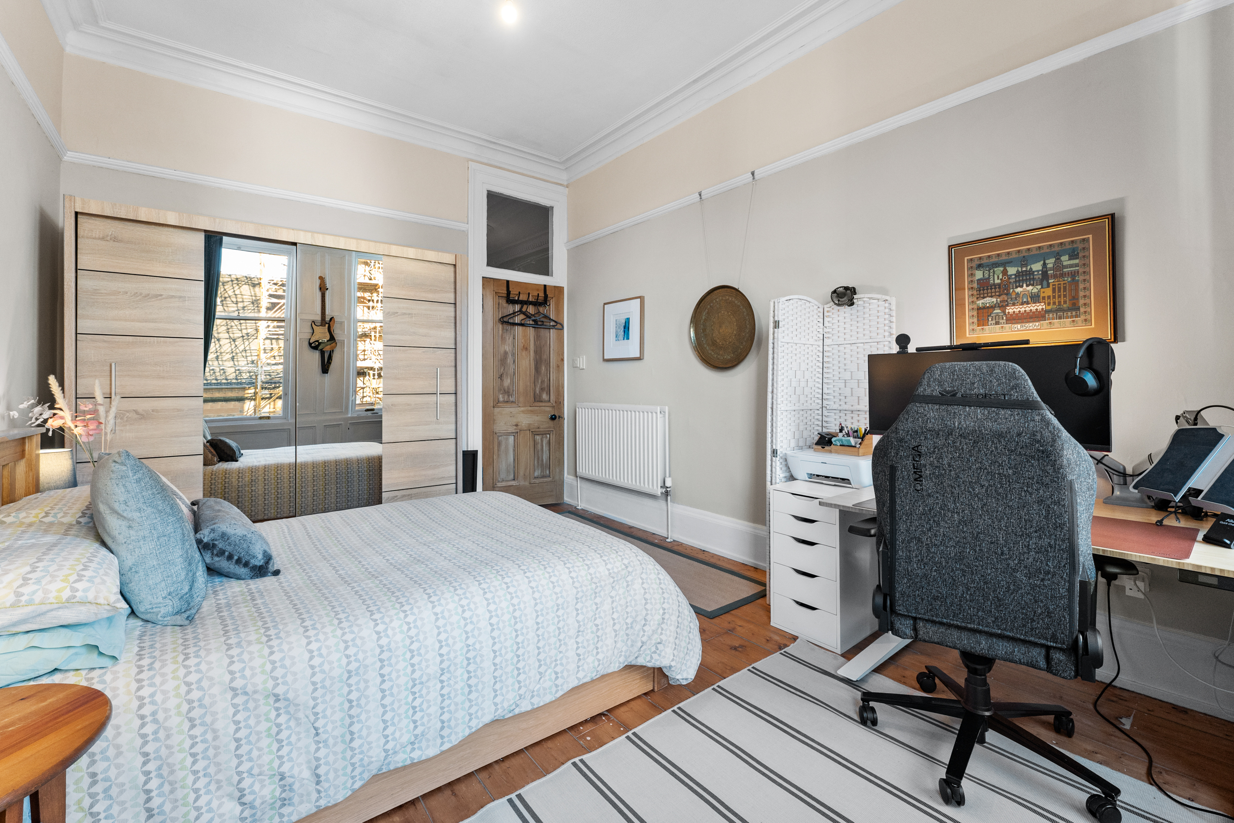 89 Albert Avenue is within 500 yards of numerous amenities on Victoria Road and Pollokshaws Road where thriving coffee houses, restaurants, bakeries and bars are found. The fringe of Queen’s Park hosts a Farmers’ Market on the 1st and 3rd Saturday of each month whilst recreational space, tennis courts, football pitches and a regenerated bandstand are readily available within the park. Queen’s Park train station is less than half a mile away whilst regular bus services are available on Victoria Road or on Pollokshaws Road.