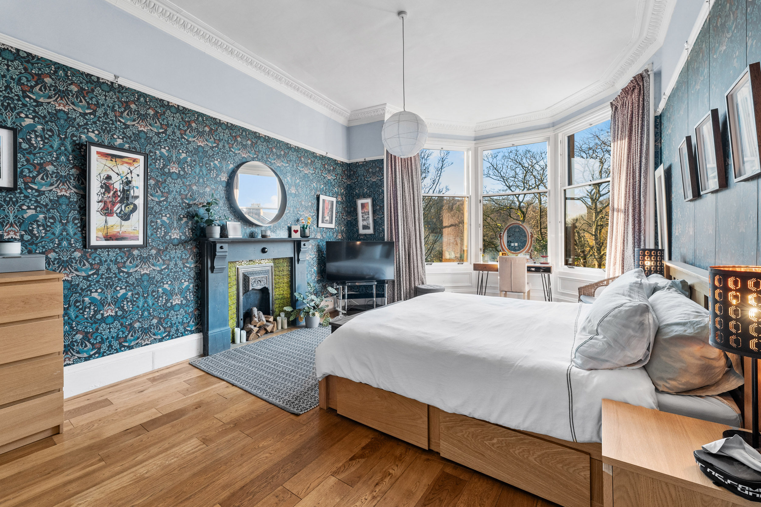 This magnificent top floor flat delivers exceptional natural light, first class privacy and Southerly views over Queen’s Park.
