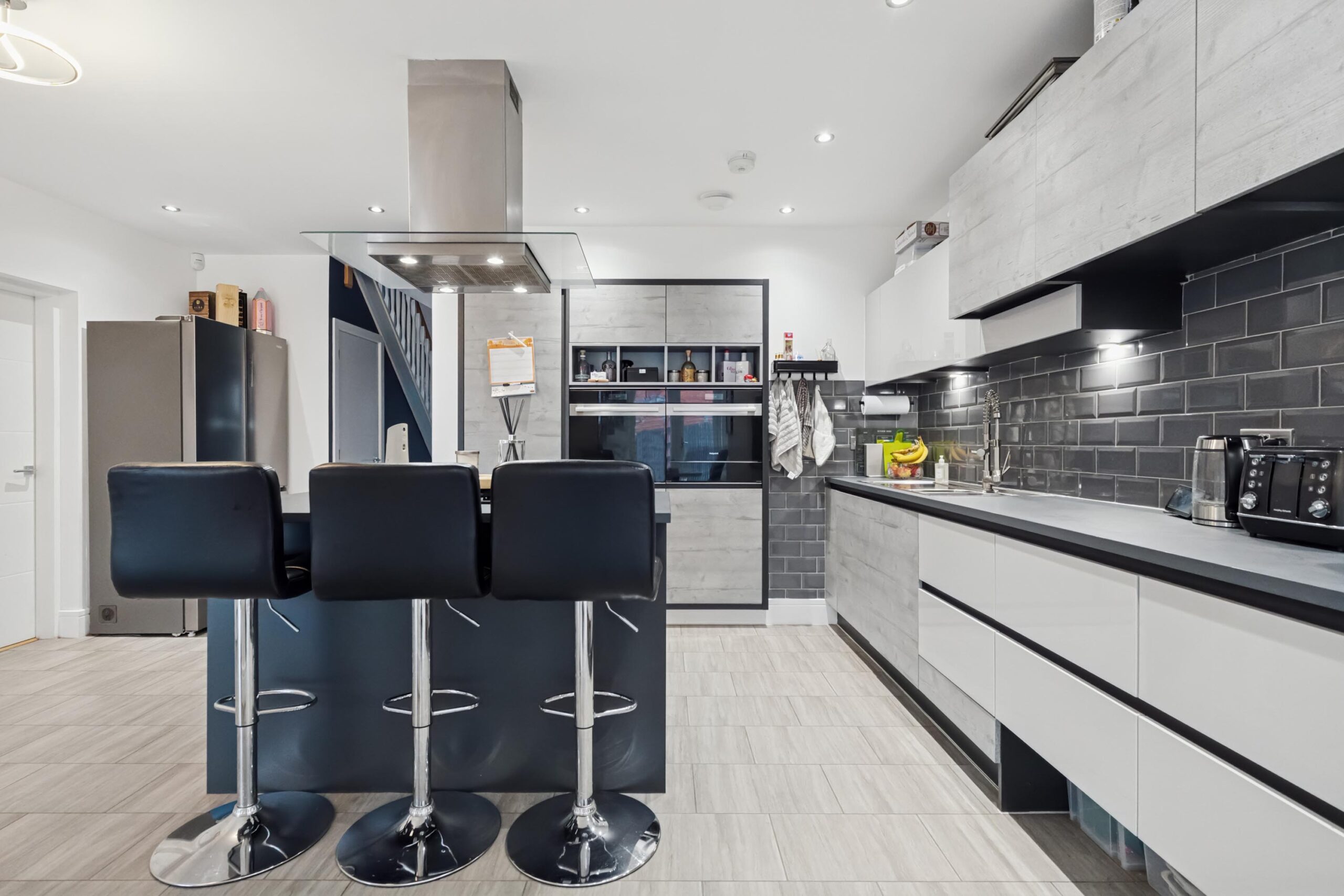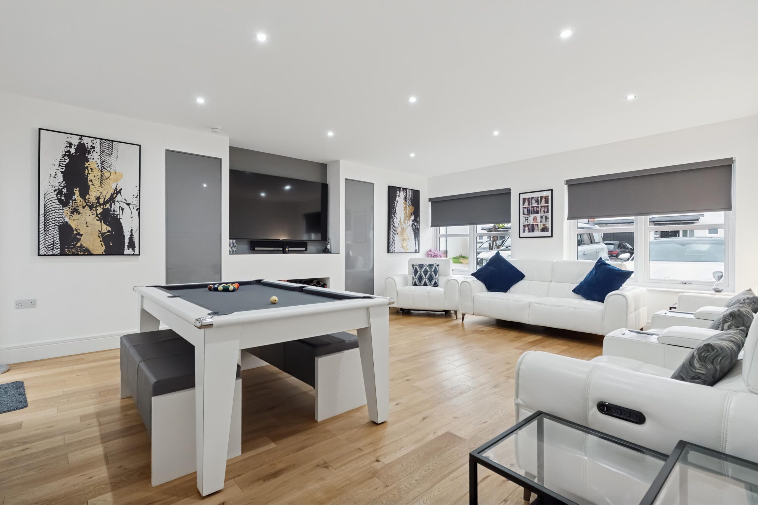 Externally, the property benefits from a double driveway to the front and a rear garden with an established lawn and a wood deck patio. There is an expansive outhouse which is composite cladded and provides two separate spaces, on one side, a home office and the other, a gym. The outhouse is fully wired with electrics and can be used as a highly versatile space.
