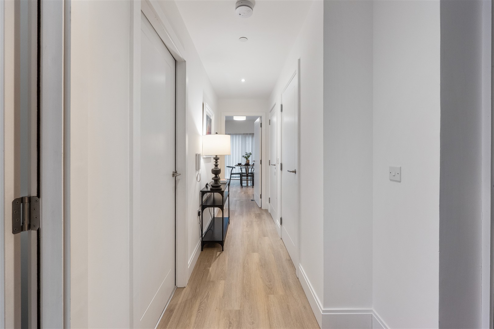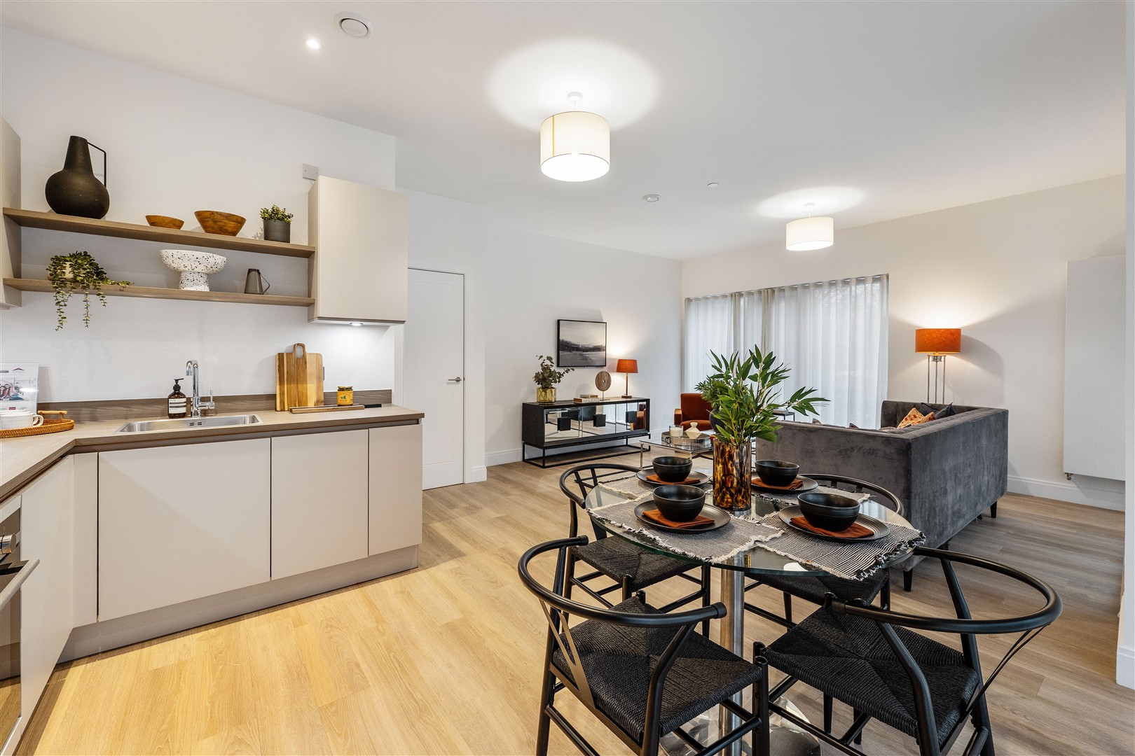 A bright, open-plan living, kitchen and dining area forms the hub of the home, with a sleek Leicht kitchen, Siemens integrated appliances, and ample space to relax or entertain. Both double bedrooms offer excellent proportions, and the main bathroom is finished with quality brassware and tiling. The apartment also benefits from intelligent heating controls, audio-video entry and lift access.