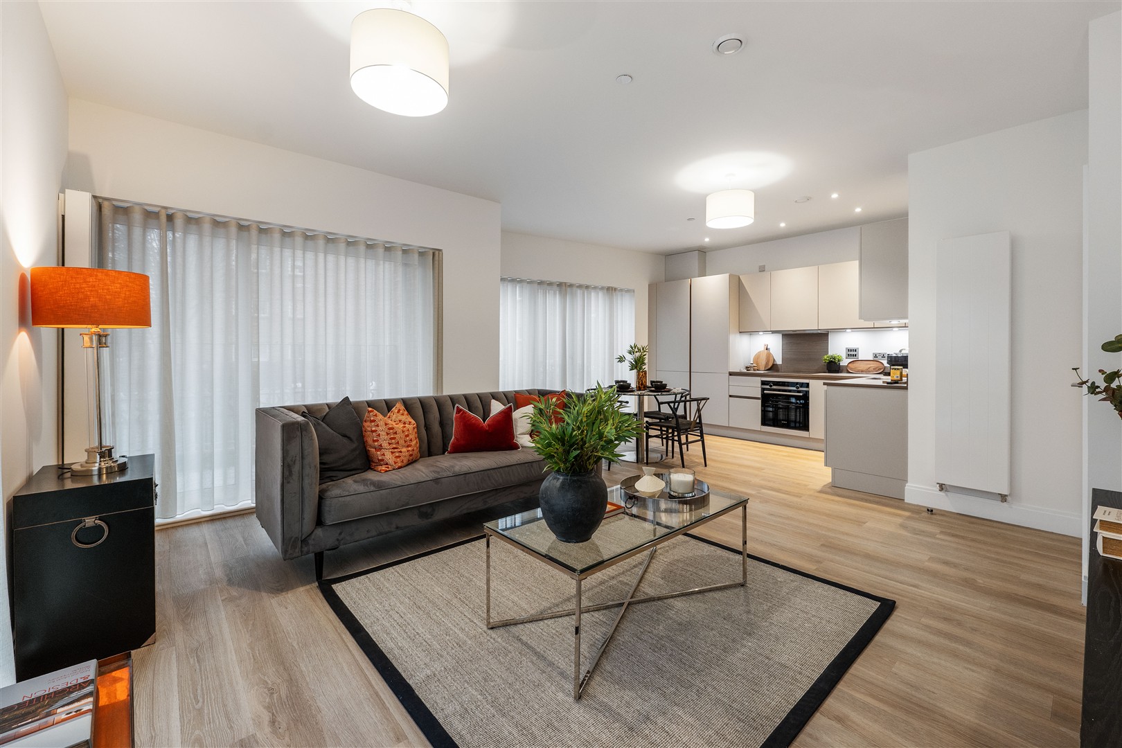 A bright, open-plan living, kitchen and dining area forms the hub of the home, with a sleek Leicht kitchen, Siemens integrated appliances, and ample space to relax or entertain. Both double bedrooms offer excellent proportions, and the main bathroom is finished with quality brassware and tiling. The apartment also benefits from intelligent heating controls, audio-video entry and lift access.