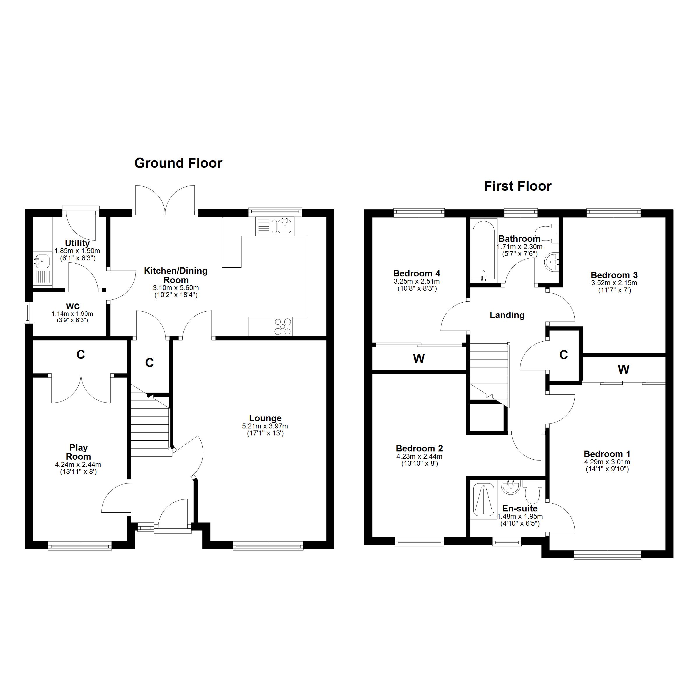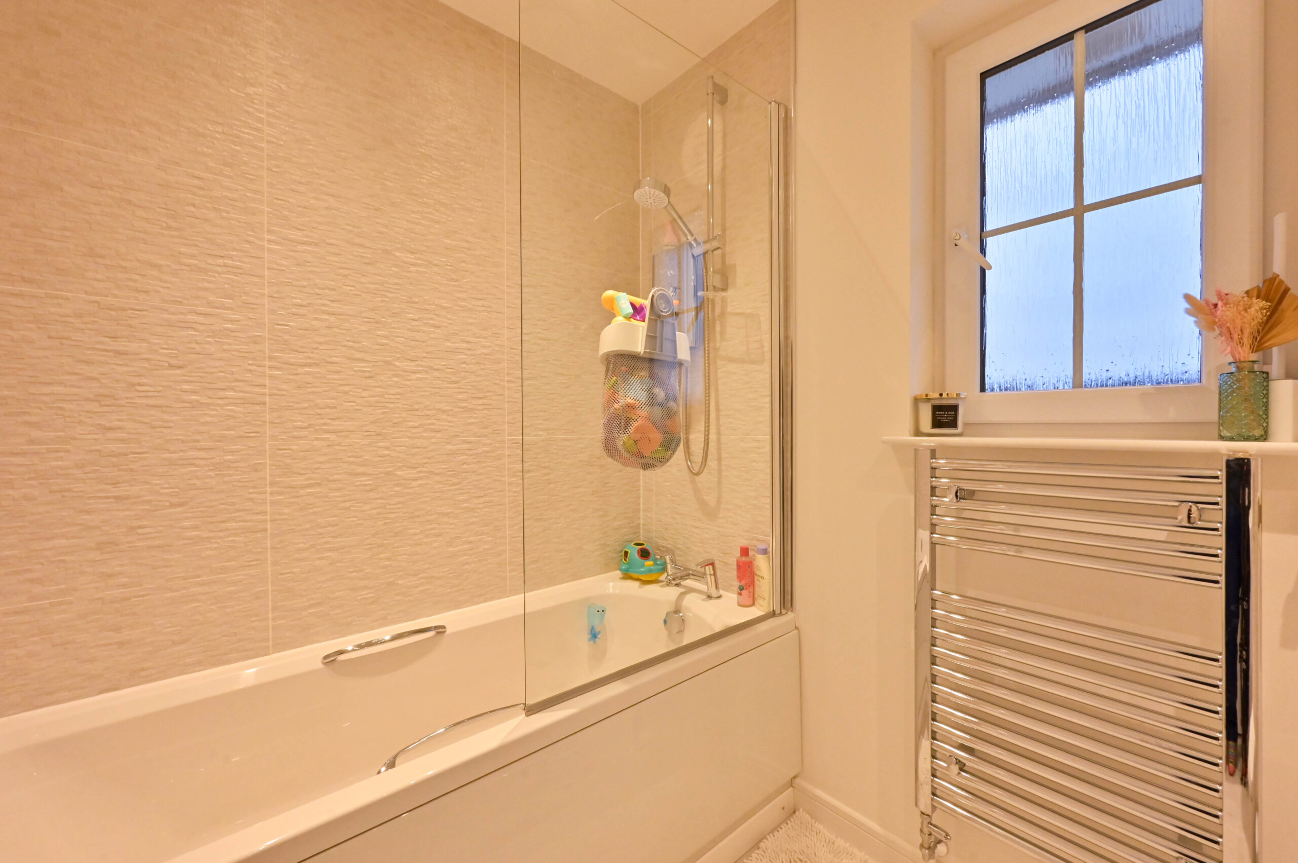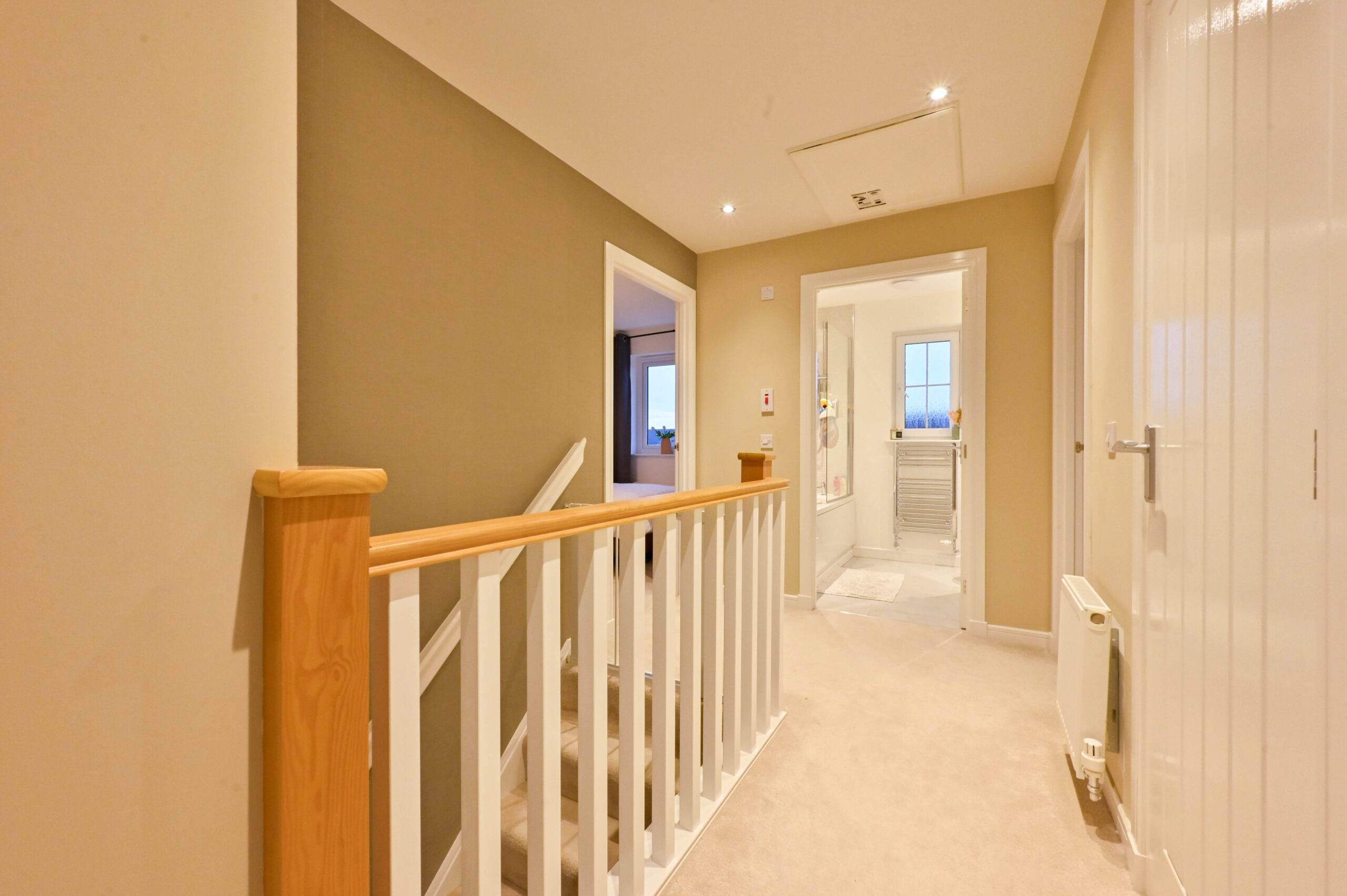The first floor features a generously sized landing with a storage closet. There are four excellent double bedrooms, all offering ample space. The principal bedroom is a particular highlight, featuring sliding mirror wardrobes, attractive panelling, feature lighting, and a modern three-piece en-suite shower room. Bedroom two benefits from a handy storage closet, bedroom three is fitted with further sliding mirror wardrobes, and bedroom four is a well-proportioned double overlooking the rear garden. The family bathroom is well-appointed with a three-piece white suite and an over-bath shower unit.