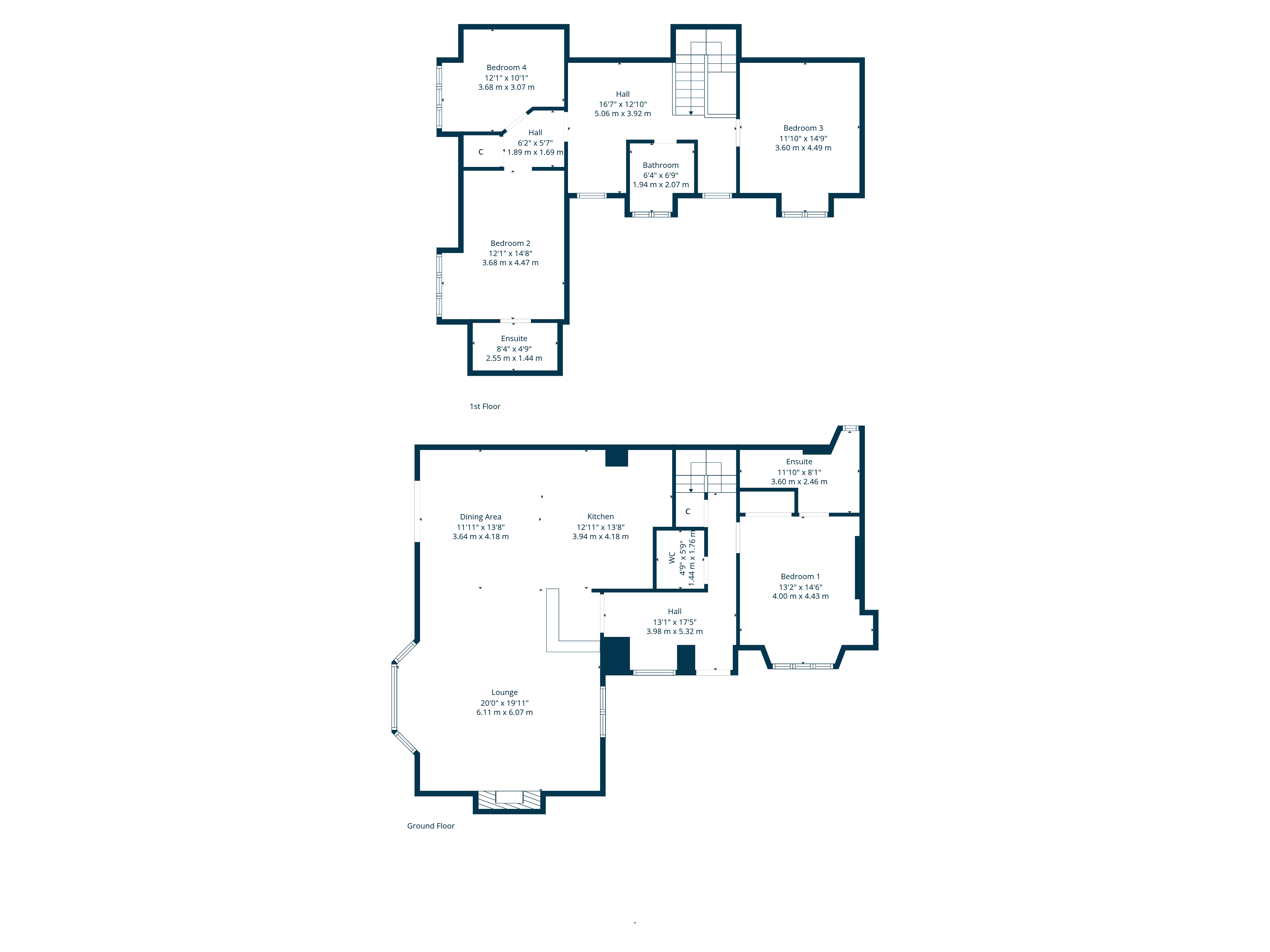 Internally, the accommodation is generously proportioned and arranged over two levels, offering a flexible and well-balanced layout suited to modern family living. The ground floor is entered via a large and welcoming entrance foyer, which leads through to an outstanding and expansive open plan main living space, with fantastic south facing open views over the countryside. This tremendous space comprises a beautifully proportioned bay-windowed living room, with a focal fireplace, featuring inset log-burning stove, creating a warm and inviting principal reception space, a separate family dining area, with direct access to a raised patio, ideal for entertaining and for enjoying the far-reaching rural views, and a modern kitchen, which is fitted to a high standard and boasts a comprehensive range of cabinetry and integrated appliances. On the ground level, there is a downstairs cloakroom/WC and an impressive principal bedroom, served by a stylish four-piece en-suite bathroom.