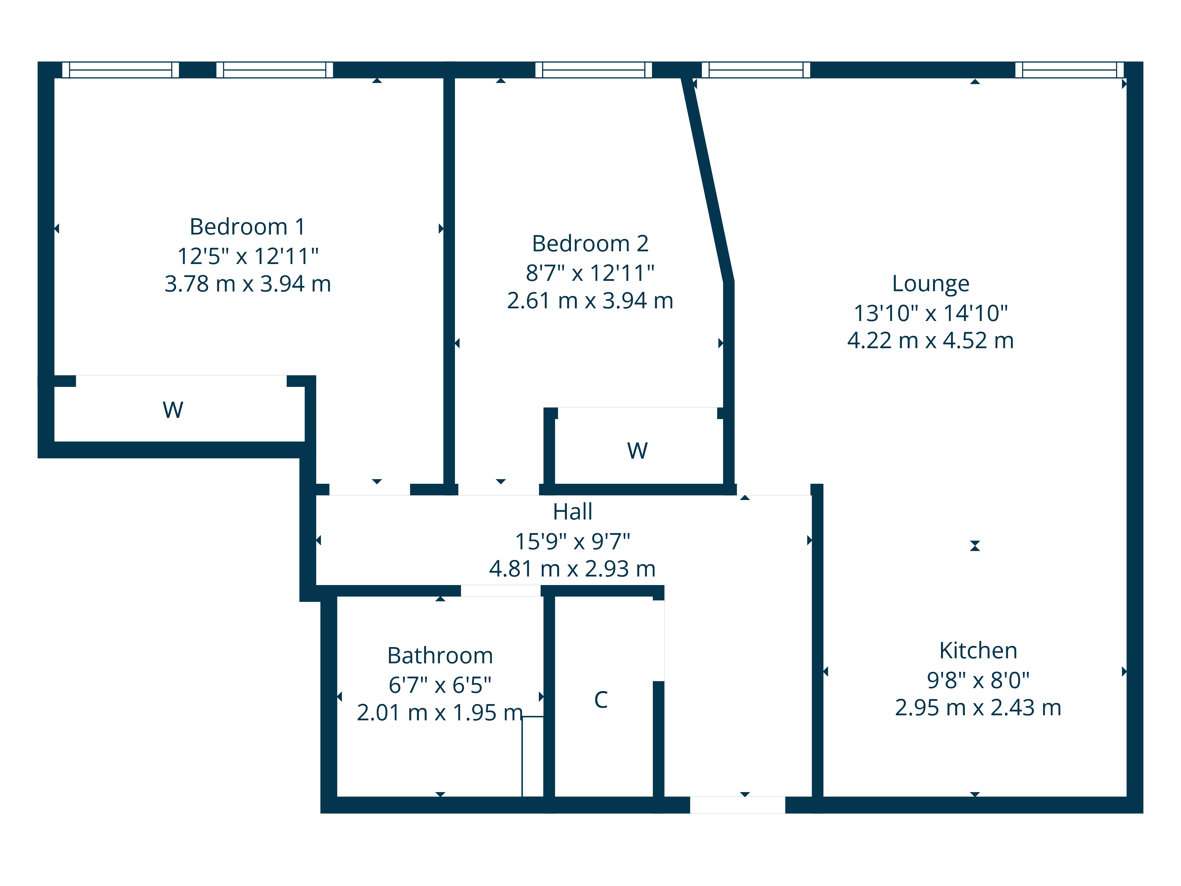 A well-arranged kitchen offers good storage and workspace, positioned to keep the living and dining areas connected yet functional. Both bedrooms are comfortable doubles, well placed for privacy and flexibility, and both offering built-in sliding wardrobes. To complete the internal accommodation on offer, there is a well-appointed three-piece suite bathroom, with shower over bath.