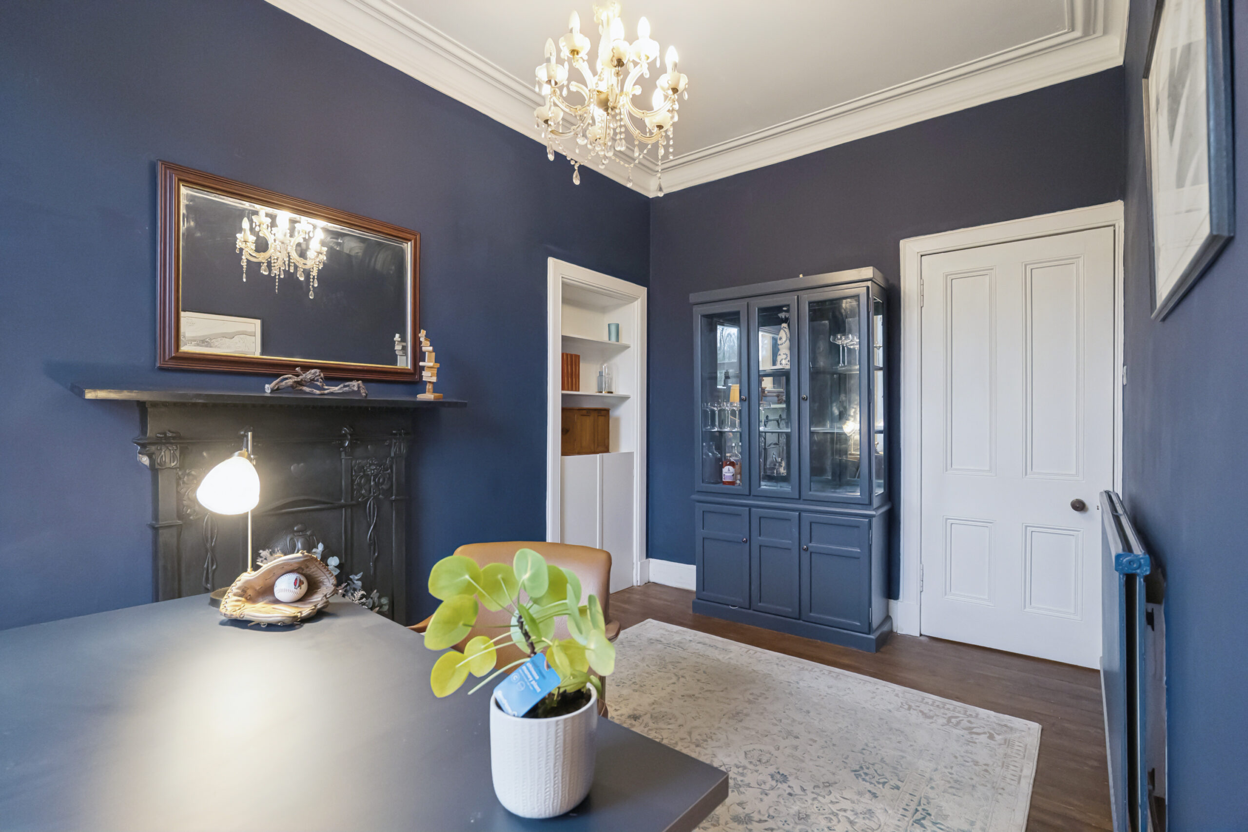 Entry is through stylish storm doors into a charming entrance vestibule, featuring a classic mosaic floor. The main reception hall, with its elegant staircase, provides access to all ground floor rooms. To the front, the bay-windowed lounge is a bright and inviting space, overlooking the field to the front. It retains a wealth of character with a feature fireplace, traditional wood flooring, and ornate cornice detailing. The magnificent open-plan kitchen and dining area is the heart of the home, brilliantly extended to the rear to create a lovely, social space. Fitted with a sleek, contrasting kitchen featuring a large central island, integrated appliances, and gold accents, the room is flooded with light from bifolding doors that open seamlessly to the garden. A handy boot room provides practical access, while a versatile fourth bedroom, located at the front, features a charming fireplace and press cabinet. Completing this level is a beautiful three-piece bathroom, finished with lovely wall panelling and a classic roll-top bathtub.