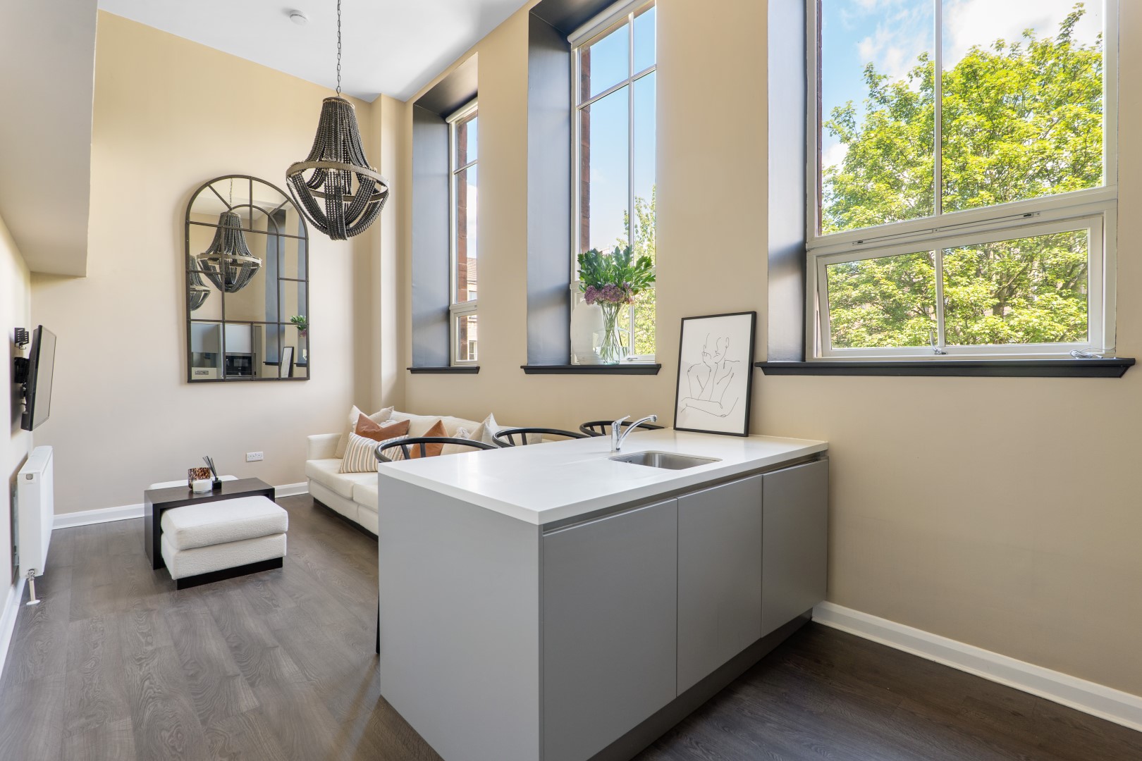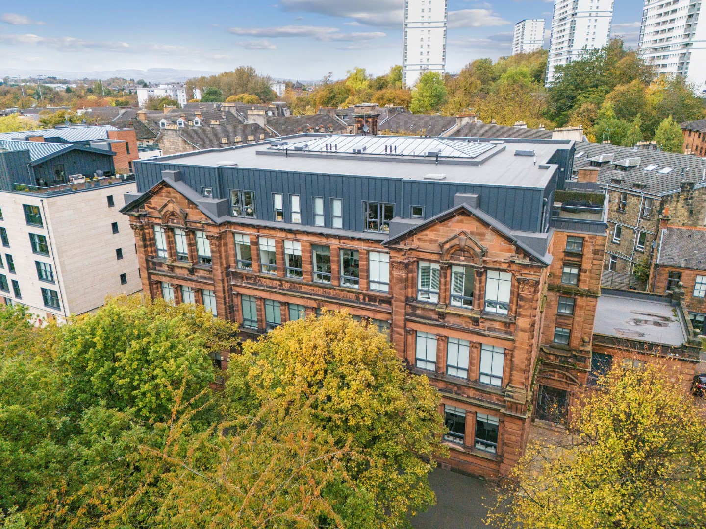 1/7 27 Broomhill Avenue is a stunning, two-bedroom, first floor duplex apartment, with private allocated parking, in the highly desirable Broomhill district. In 2016, Kelvin Properties began the dramatic transformation of the C-listed former Broomhill Public School building. The result was a collection of 33 spacious and modern apartments, now known as The Atrium. The building has been elegantly restored and redesigned, and offers without doubt one of the most beautiful communal areas in the West End. There is also video security entry, magnificent central courtyard and lift access to all levels.