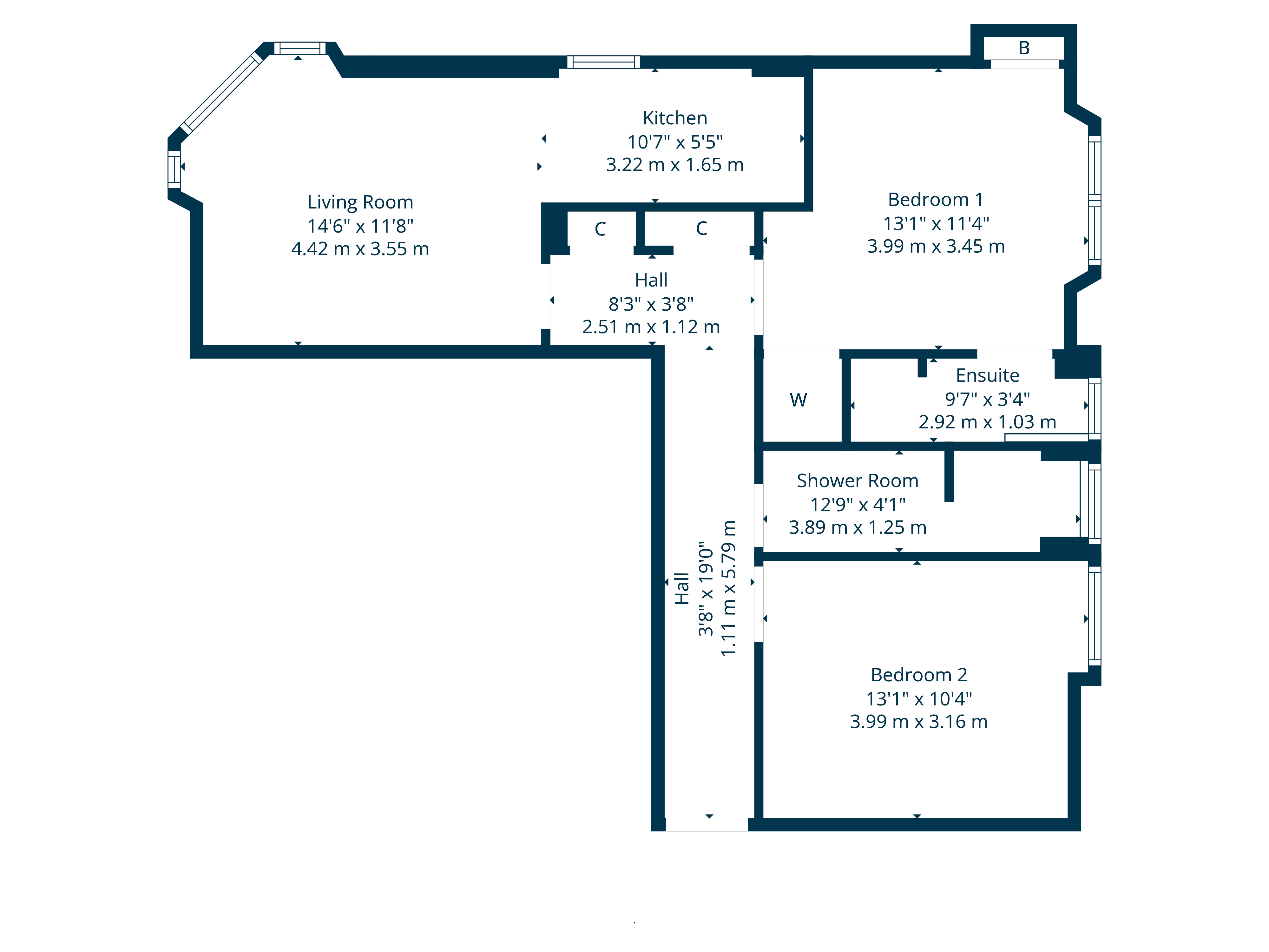 The accommodation in brief: resident’s stairwell to first floor, private reception hallway and a corner bay windowed lounge open plan to a recessed kitchen. The kitchen has fitted cabinetry, a fridge freezer, sink, gas hob and oven/grill all of which are included in the sale. There are two double bedrooms accessed from the hallway as well as a sleek shower room/wc. The principal bedroom also has its own en-suite shower room/wc.