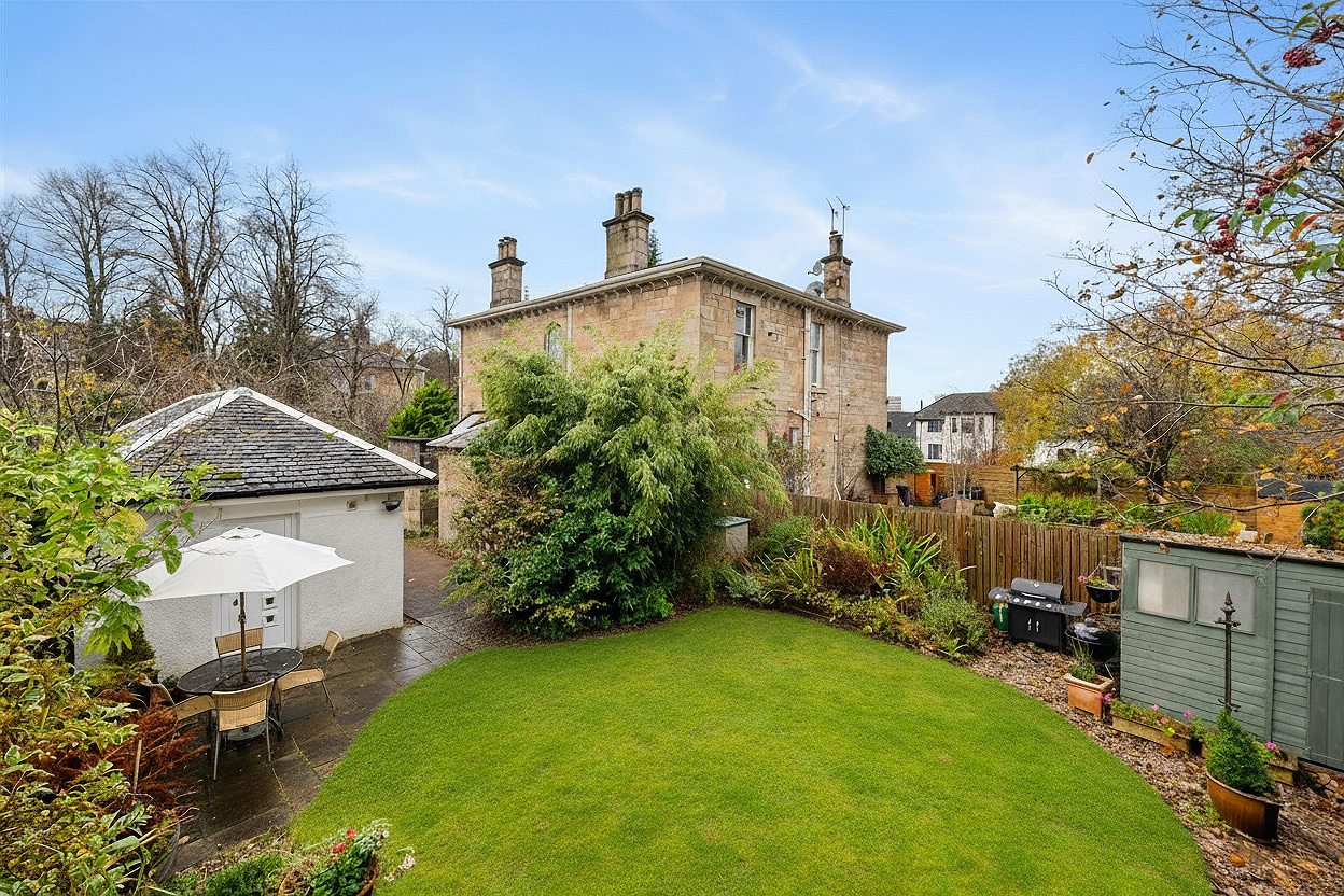 Occupying the entire first floor footprint of what was once a detached villa, this beautiful property is found in a corner site where Dalziel Drive meets Sherbrooke Avenue. The building was amicably divided into two properties in the 1950’s and the subjects deliver versatile accommodation as well as a self-contained studio flat in the garden with its own Airbnb license.