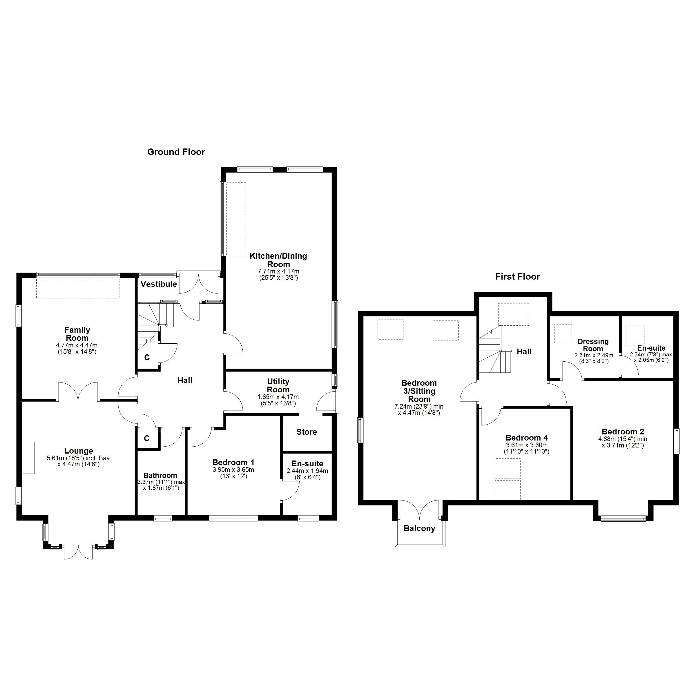 An entrance vestibule opens into a broad reception hallway with timber flooring and a stair with under stair storage leading to the upper level of the property. The lounge is a spacious apartment with a dual aspect including French doors leading to the rear gardens, a wood burning stove and twin timber and glazed doors to the adjacent family room. This room is bathed in natural light with front and side facing windows and an additional bank of double glazed skylight windows along the front elevation. The focal point of this home is the dining room open plan to fitted kitchen that extends to over 25ft in length with windows on three elevations including a bank of ceiling height skylight windows to the side. The kitchen has an extensive range of fitted furniture with ample worktop surface, a range style cooker and integral appliances. There is timber flooring throughout the dining sized kitchen. A double sized bedroom is positioned on the ground floor level with rear facing window overlooking the garden and a modern en-suite shower room. The ground floor accommodation is completed with a tiled family bathroom with spa bath and a utility room.