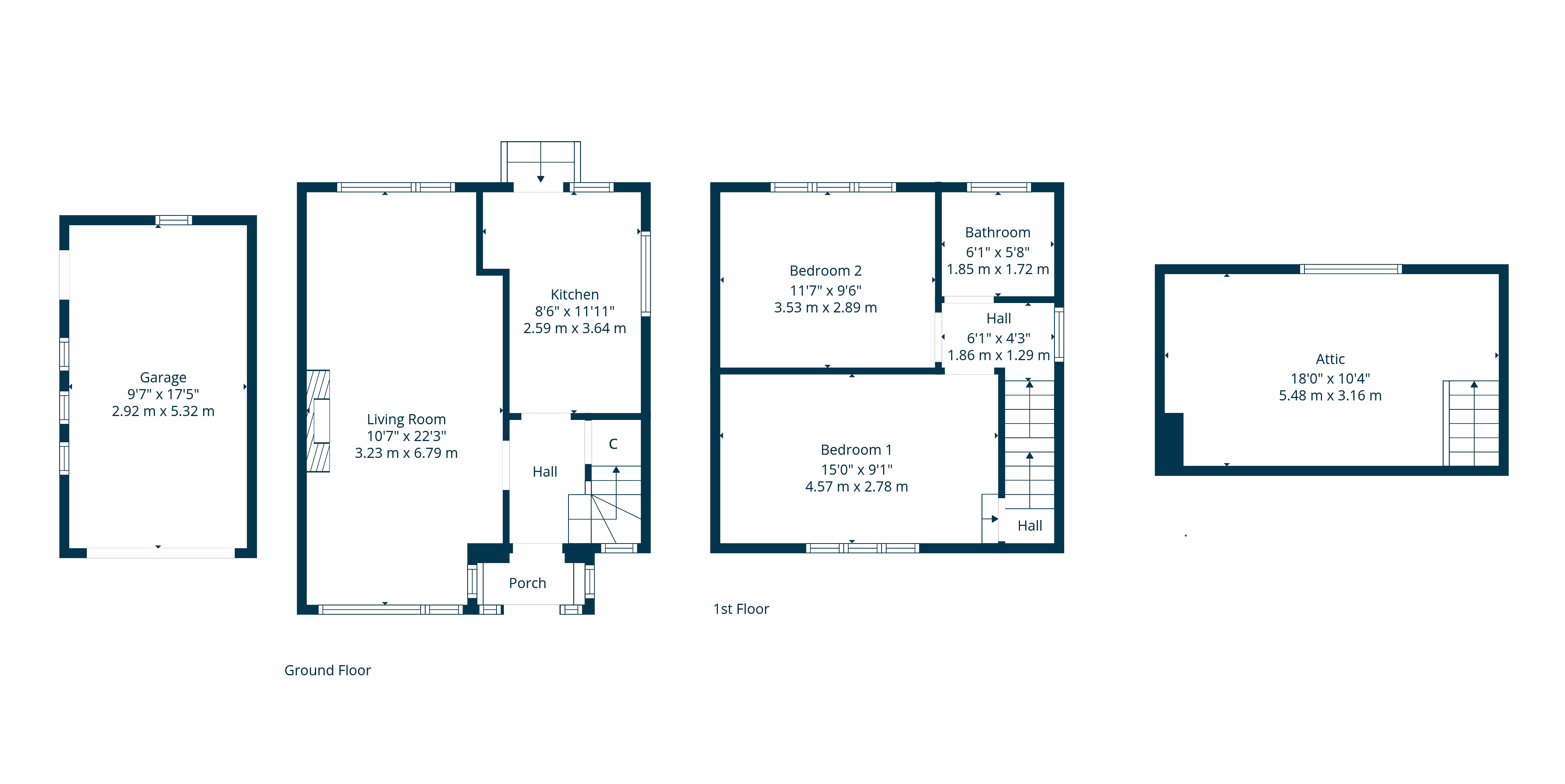 Upstairs, the property offers two generous double bedrooms and a superb floored and lined loft space, accessed via fixed stair from the main bedroom, which delivers a highly versatile and extremely useful additional space. Completing the accommodation, there is a contemporary family bathroom, fitted with a modern white three-piece suite and over bath shower.