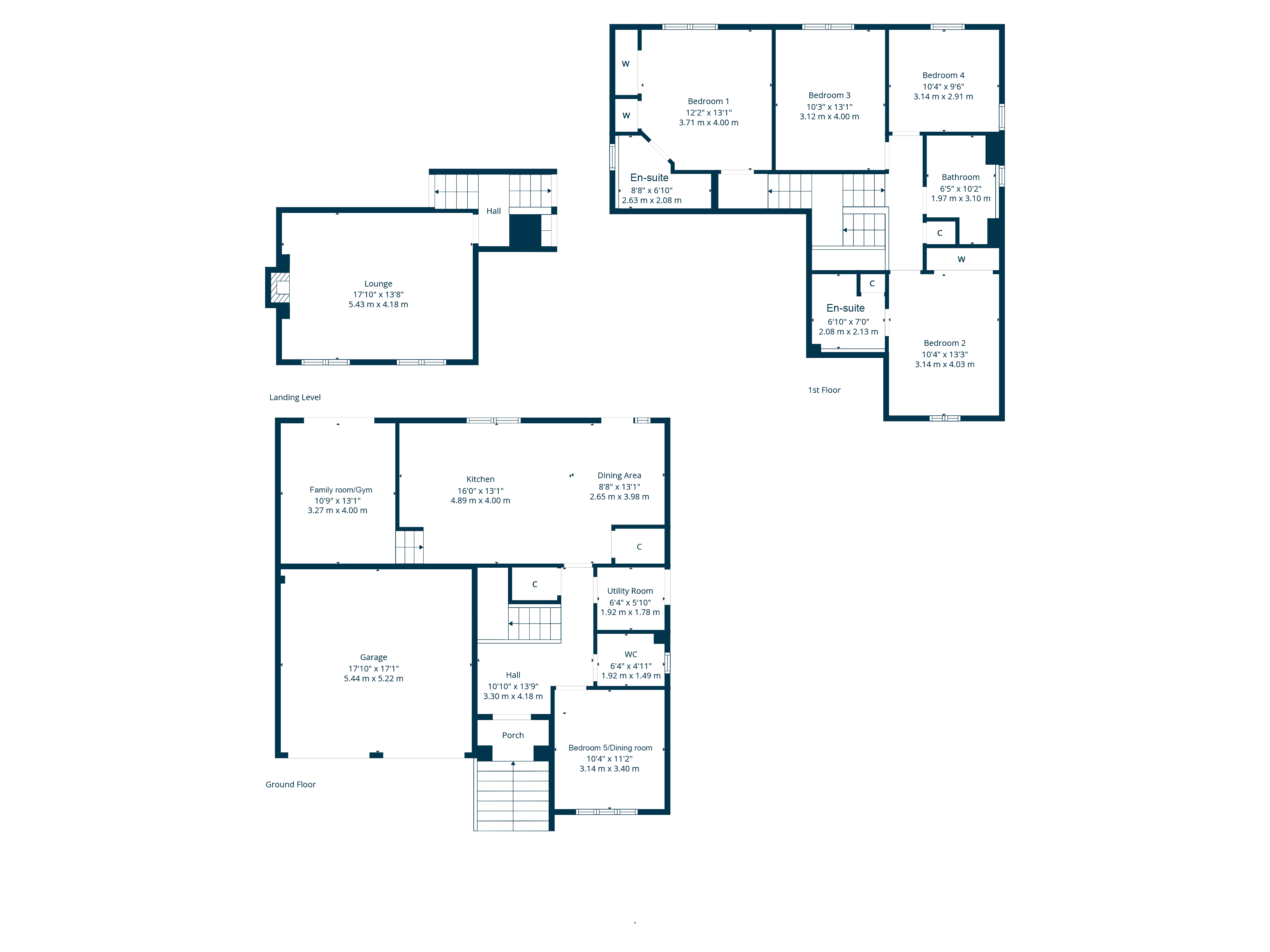 Ground floor accommodation extends to entrance porch, traditional style reception hallway with storage adjacent, downstairs bedroom/formal dining room, WC, utility room, fantastic, upgraded dining kitchen with feature central island and access to gardens at rear with further split-level access to a useful family/games room which is currently used as a gym and also has access to rear gardens. Over the garage there is a landing level where there is an impressive front facing formal lounge with feature log burner, and the first floor provides generous principal bedroom with storage and en-suite, lovely second bedroom with en-suite shower room, two further good bedrooms and main family bathroom. The specification of the property includes a system of gas central heating, double glazing, oak internal doors, modern floor coverings and overall is well presented and decorated throughout.