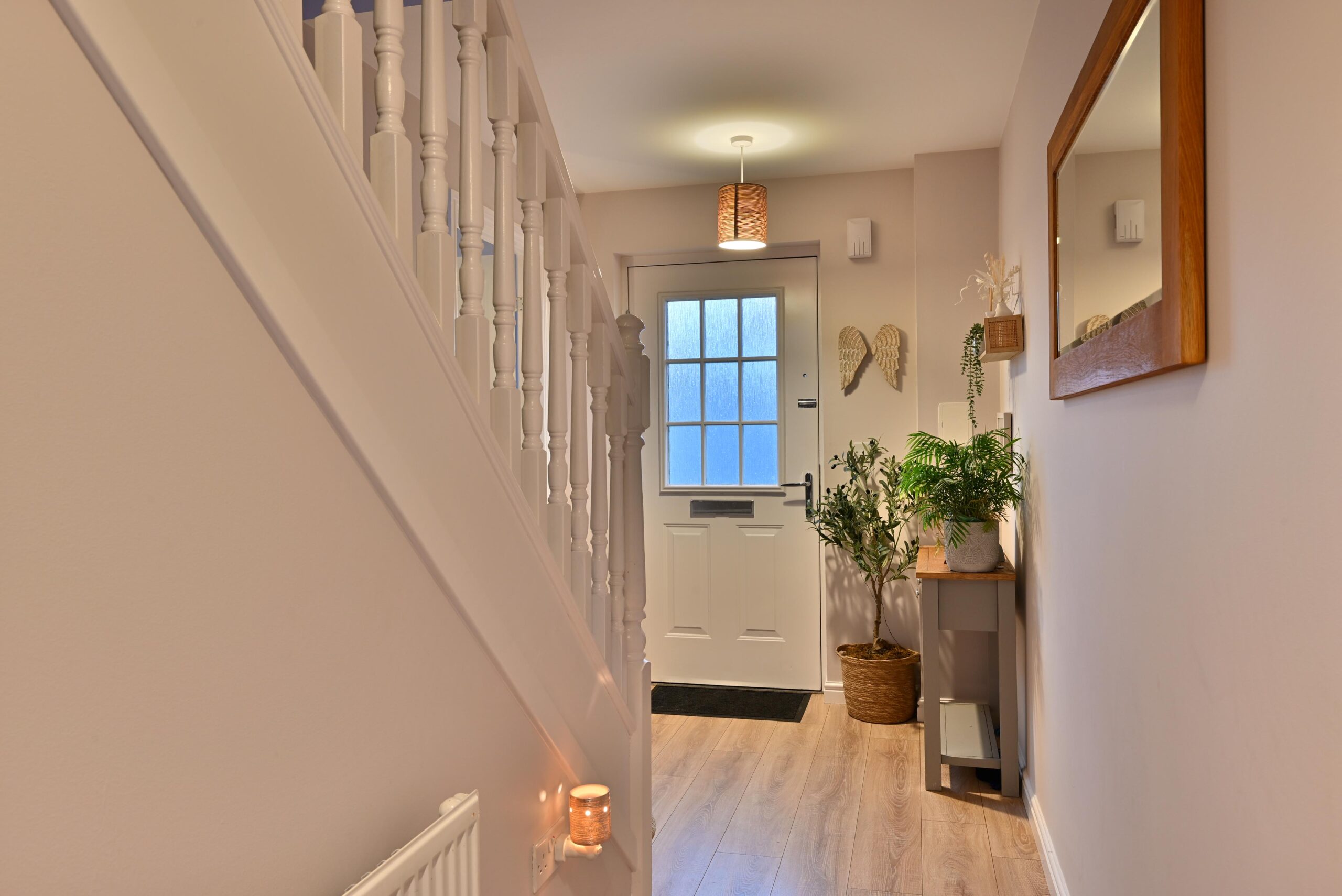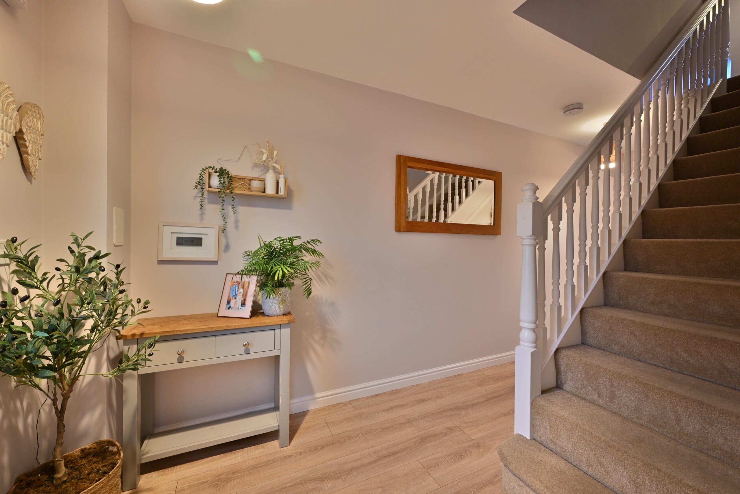 This charming home is presented in excellent decorative order and has been meticulously maintained by the current owners to provide a comfortable and spacious family home. The entrance hall has a stairwell to the upper floor with storage below and entry to a spacious lounge with a bay window formation to the front. At the rear of the property there is a spacious open plan kitchen and dining room with a range of quality fitted kitchen furniture and appliances and French doors leading to the rear gardens. There is a ground floor utility room with space for appliances and a modern Cloakroom WC.