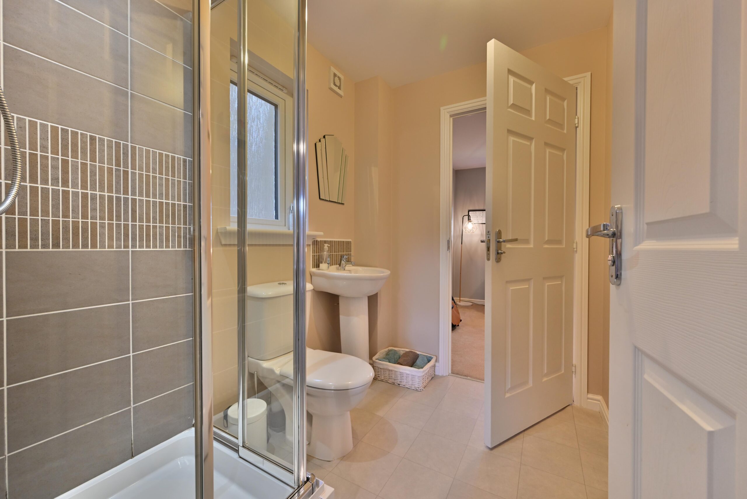 On the upper floor of the property there is a central hallway with a storage cupboard and a hatch giving access to the attic. The principal bedroom suite has fitted wardrobes providing storage and a modern ensuite shower room. The second and third double sized bedrooms both share access to a Jack and Jill style modern ensuite shower room and bedroom three also has fitted wardrobes. There is a fourth bedroom with window formation to the rear. The family bathroom has a three piece suite including a WC, wash basin and bath. The specification of this modern home includes a gas fired central heating system, double glazing to external windows, an integral single garage and an electric car charger.