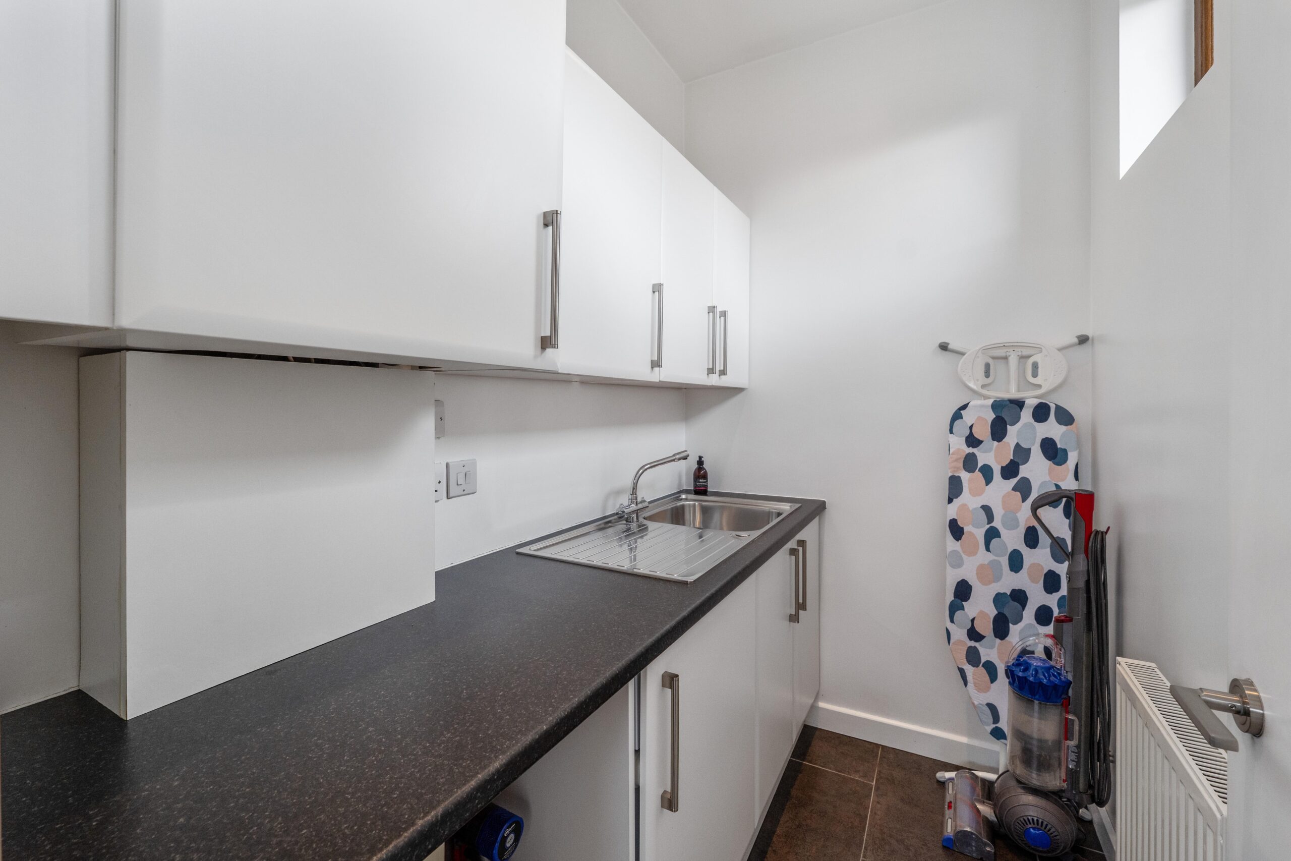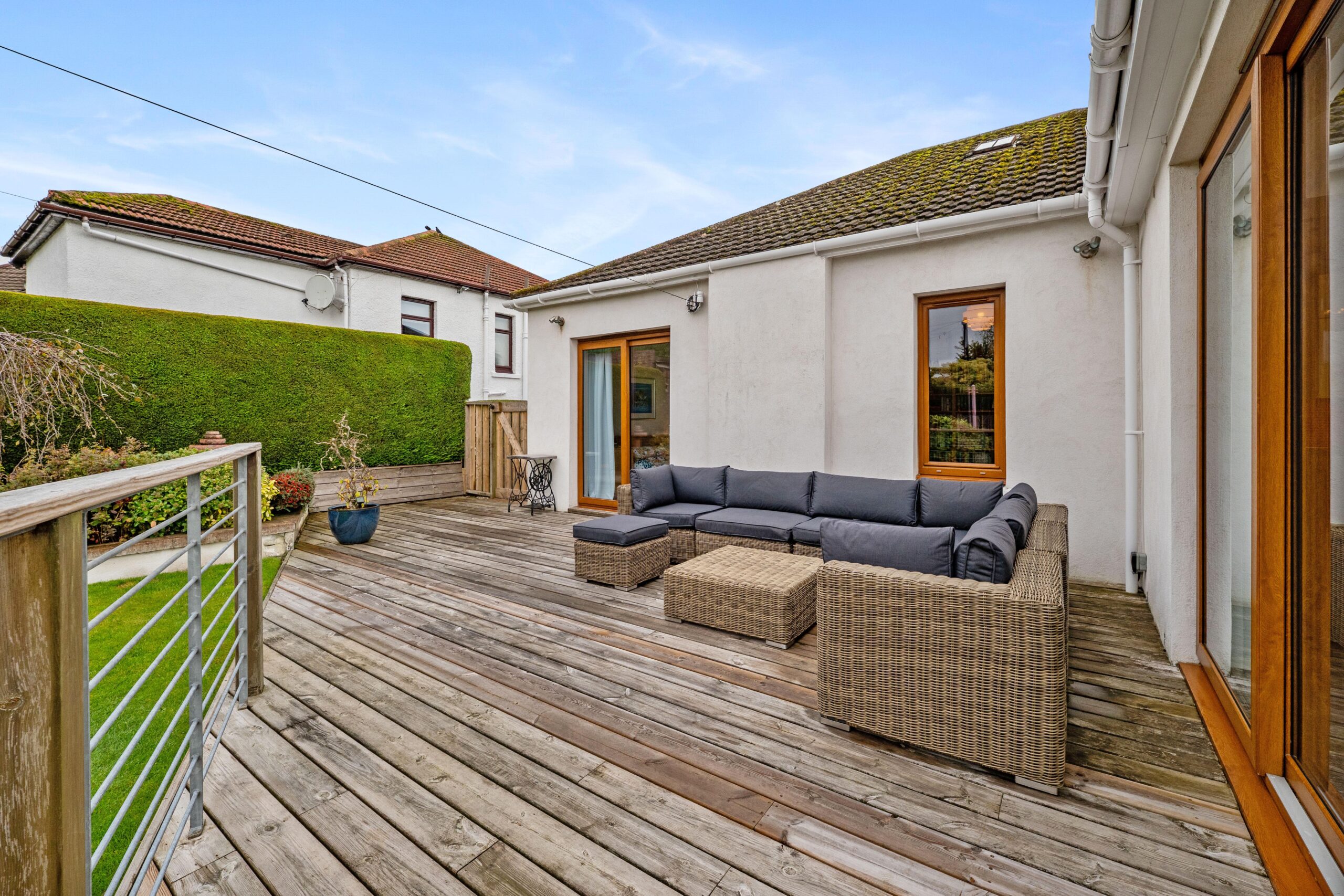 Externally, the house is complemented by outstanding gardens. To the front, a sizeable mono-bloc driveway provides ample off-street parking. The rear garden is a particular highlight, being south-facing, private and fully enclosed. Beautifully landscaped, it offers a mix of mature planting, and lawn and a choice of seating areas, creating a superb setting for family life, entertaining or relaxation. The elevated deck, directly accessible from the house, extends the living space outdoors and makes the most of the garden’s sunny aspect.