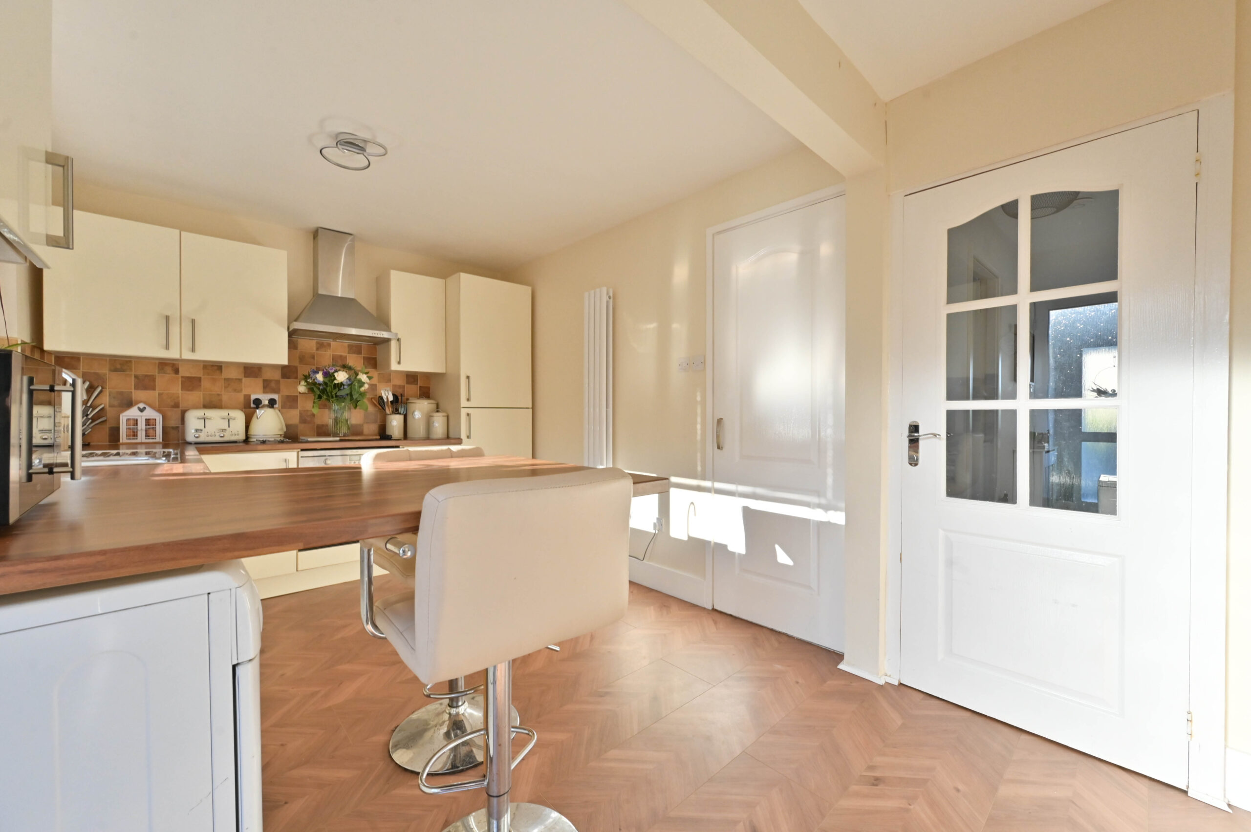 Entry is via a large front porch into the main hallway. The generous, front-facing lounge is a bright and versatile reception room, providing ample space for both lounge furniture and accommodating a full dining set. To the rear, the impressive breakfasting kitchen is fitted with a wide range of units and integrated appliances, all centred around a practical peninsula island breakfasting bar, ideal for casual dining.
