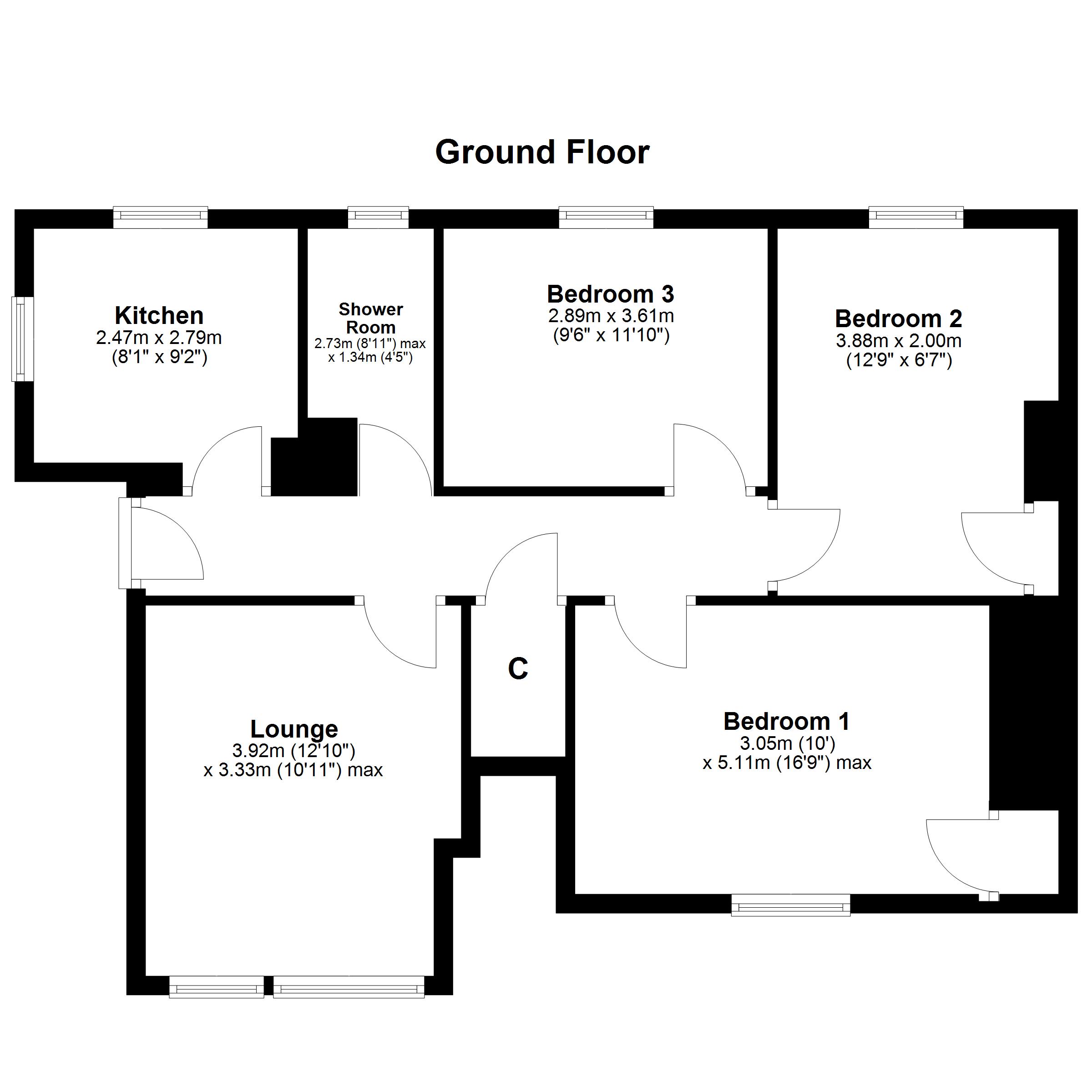 Access via communal path to front entrance into a reception hall which provides access throughout the home and also a generous storage closet, a spacious front facing lounge with room for both lounge and dining furniture, adjacent, the well-equipped kitchen boasts plenty of storage, workspace, and dual-aspect window formation for plenty of natural light. Three double bedrooms provide flexible accommodation, while a modern three-piece shower room completes the home.