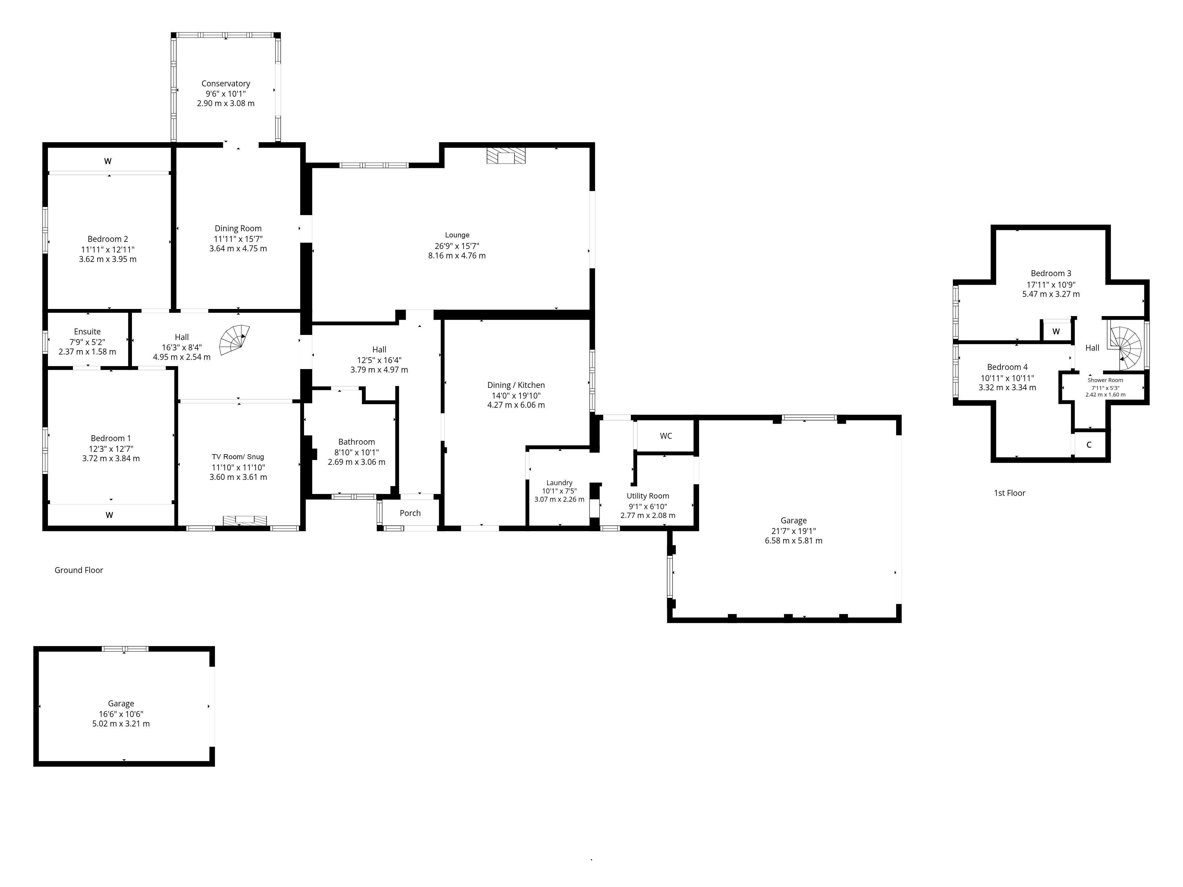 The flexible accommodation extends to entrance porch, generous sized reception hallway providing access to TV/snug room with fireplace, generous sized lounge with feature patio doors to gardens, dining room giving access to conservatory, two downstairs bedrooms with built in storage and one with en-suite shower room, upgraded family bathroom with separate shower, bright spacious kitchen with breakfasting area, French doors giving access to gardens. Spacious laundry/utility room off rear hallway with additional WC and further utility space and useful internal courtesy door to double garage. The upper accommodation provides two bedrooms and a separate shower room/WC.