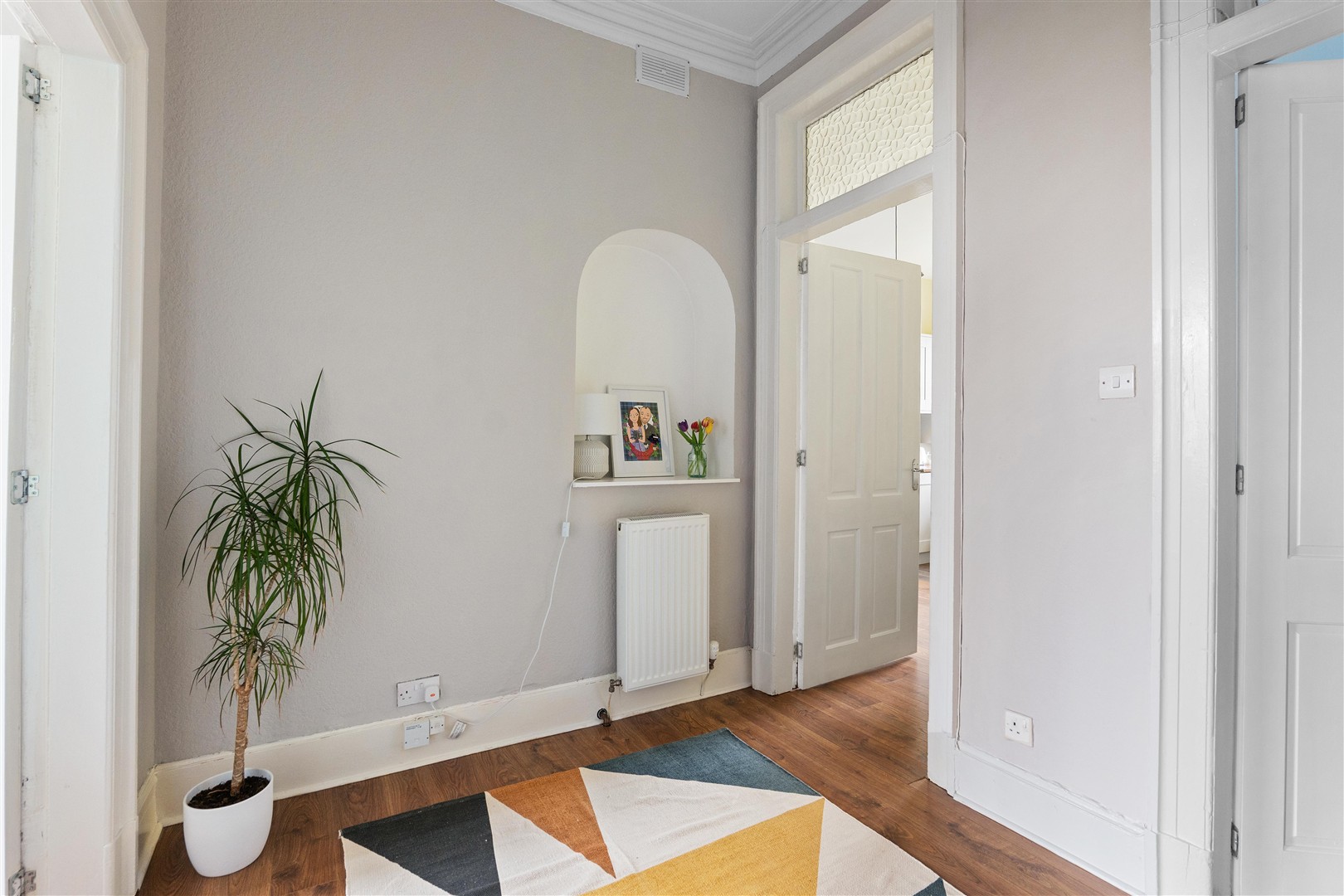 Occupying a particularly bright position in a bustling pocket of Glasgow, this excellent flat has a fitted dining kitchen and impressive shared gardens to the rear. The property has been very well cared for and upgraded by our client since they took ownership.