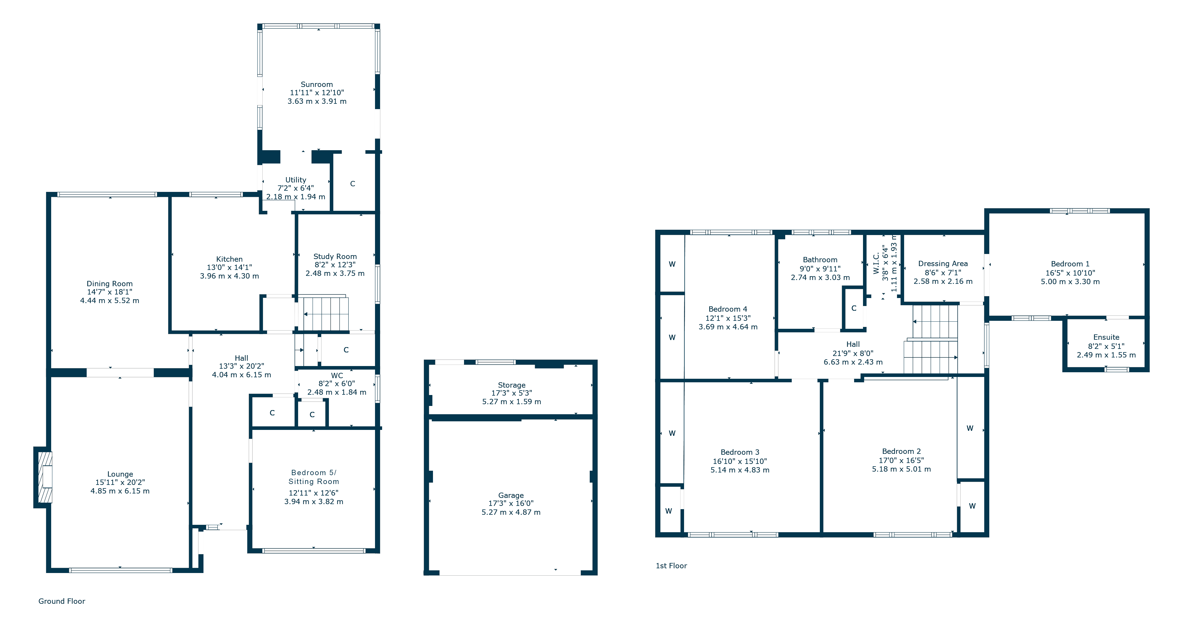 Double storm doors leading into vestibule, large traditional hallway with generous cloaks area and separate WC with further storage, beautifully sized lounge to front with sliding pocket doors leading to spacious dining room, TV/family room to the front, dining sized kitchen with appliances and access to rear garden room that gives aspects and access onto patio and gardens, and the ground floor is completed by a useful large boot room/additional storage area. The upper accommodation provides principal bedroom with its own en-suite/wet room and dressing area/study area, three further double bedrooms all with extensive built in storage and a modern main family bathroom with shower. Partially floored attic providing further storage.